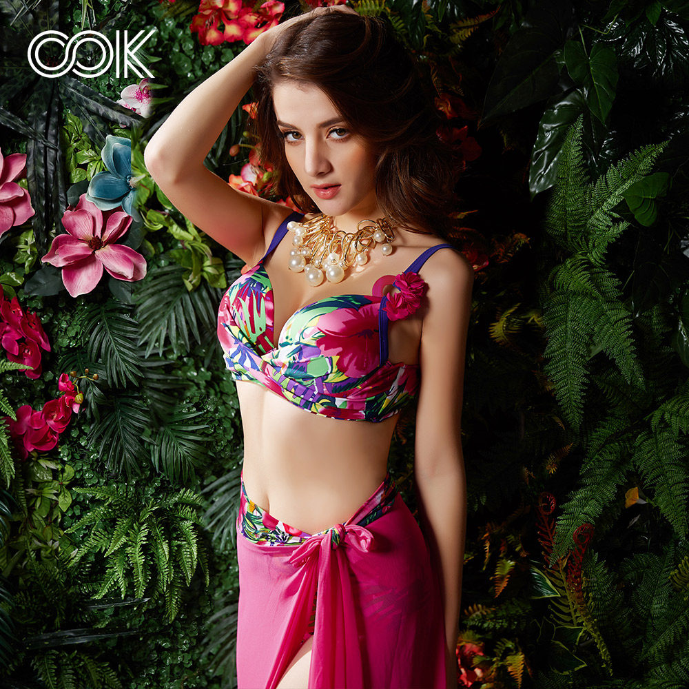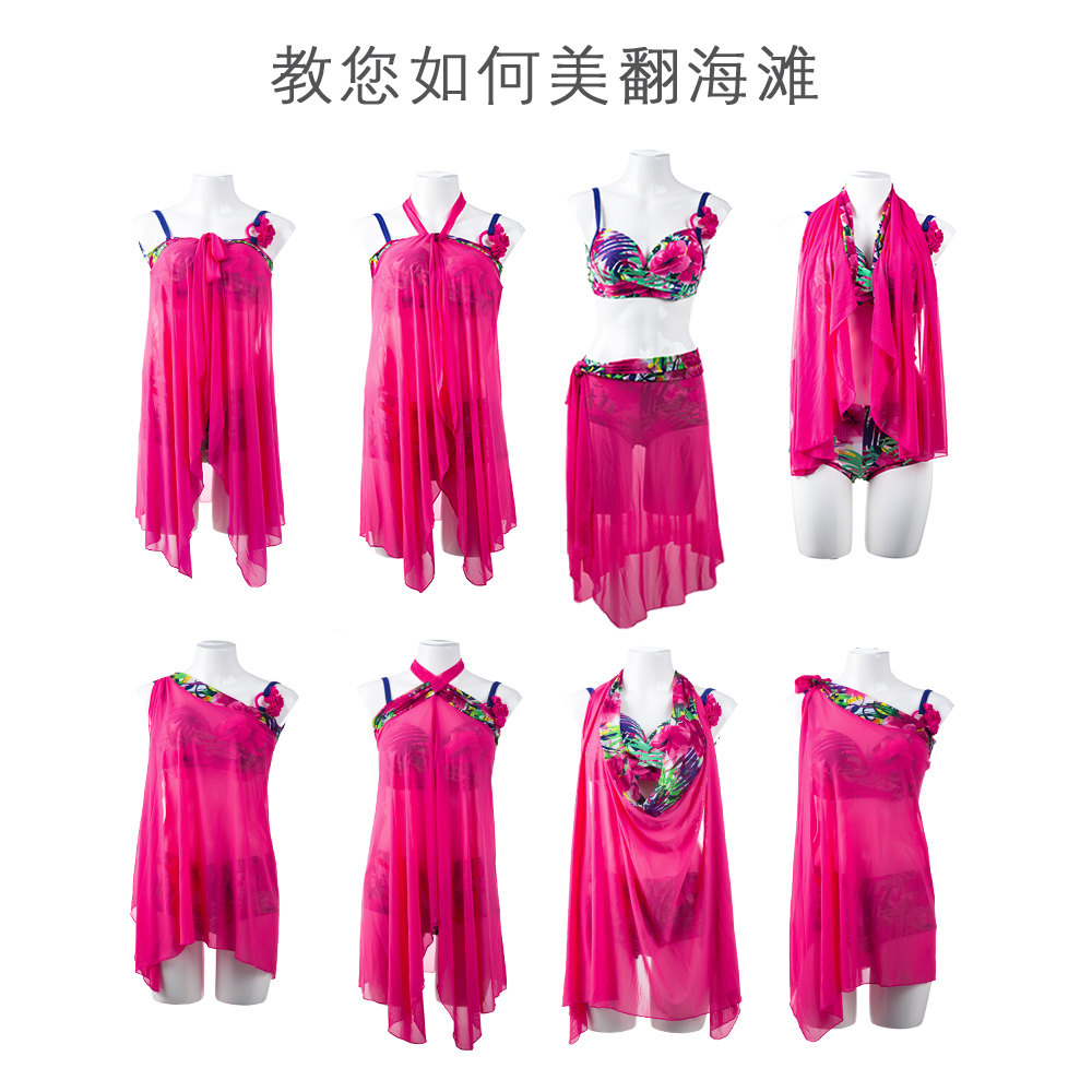 泳衣女比基尼分体三件套遮肚显瘦性感大胸聚拢钢托泳装温泉游泳衣