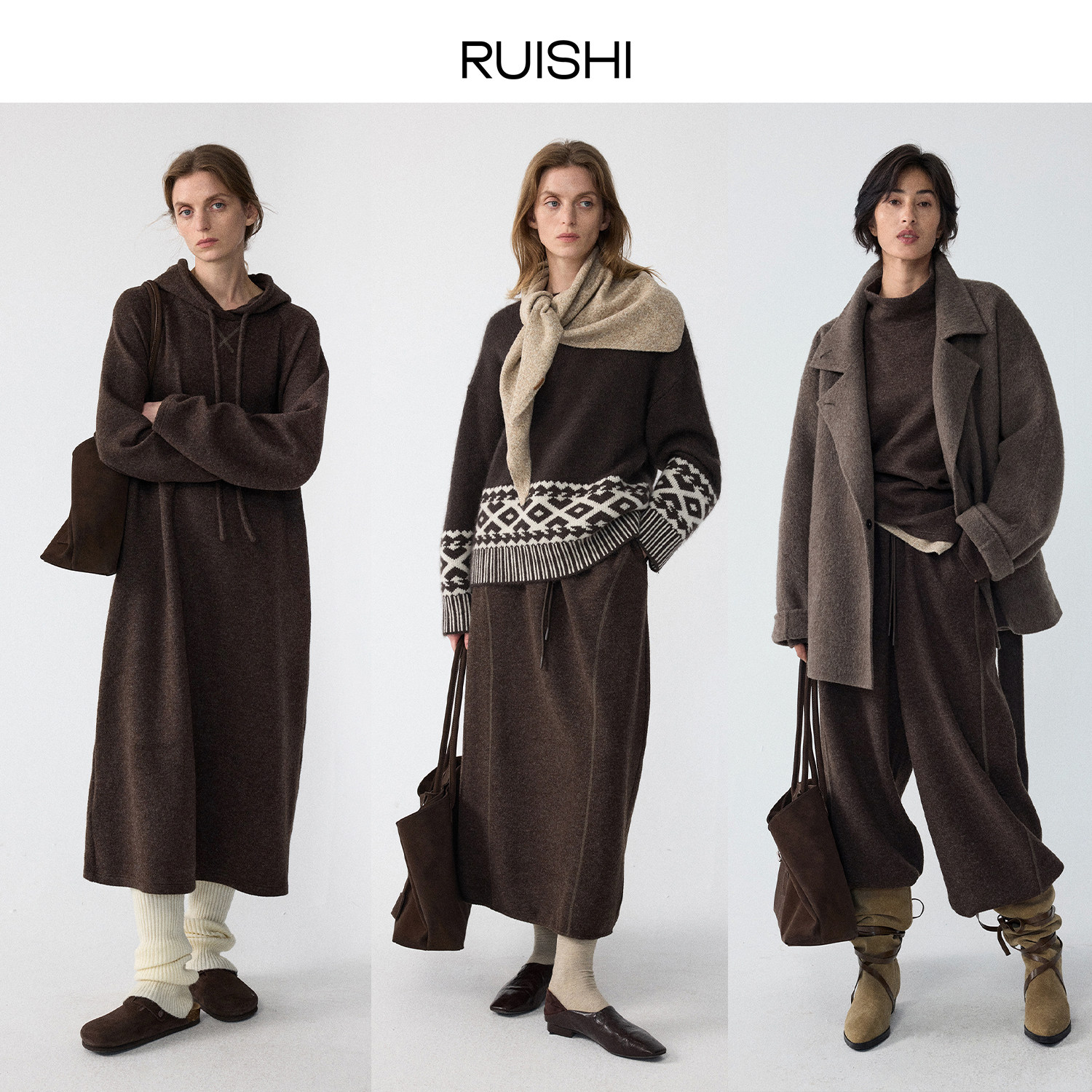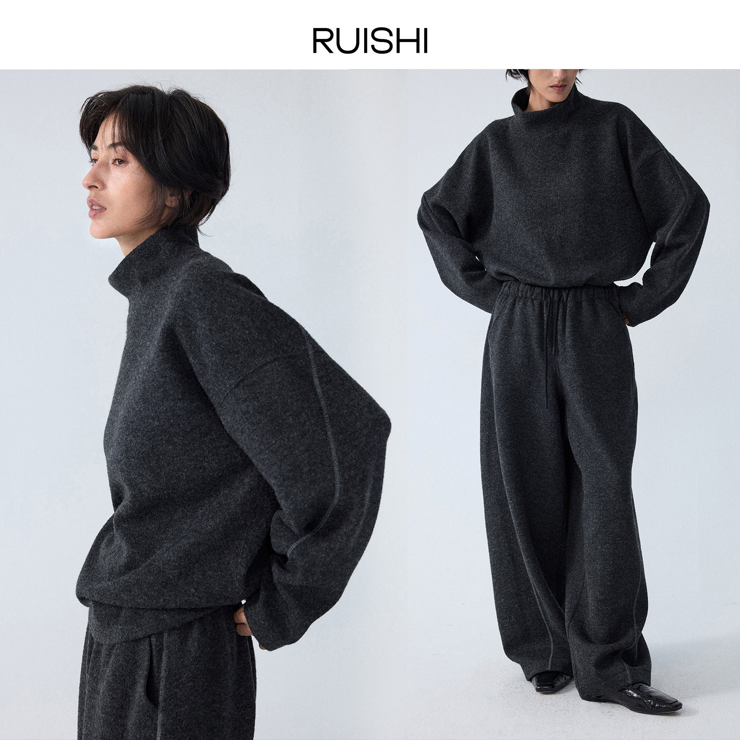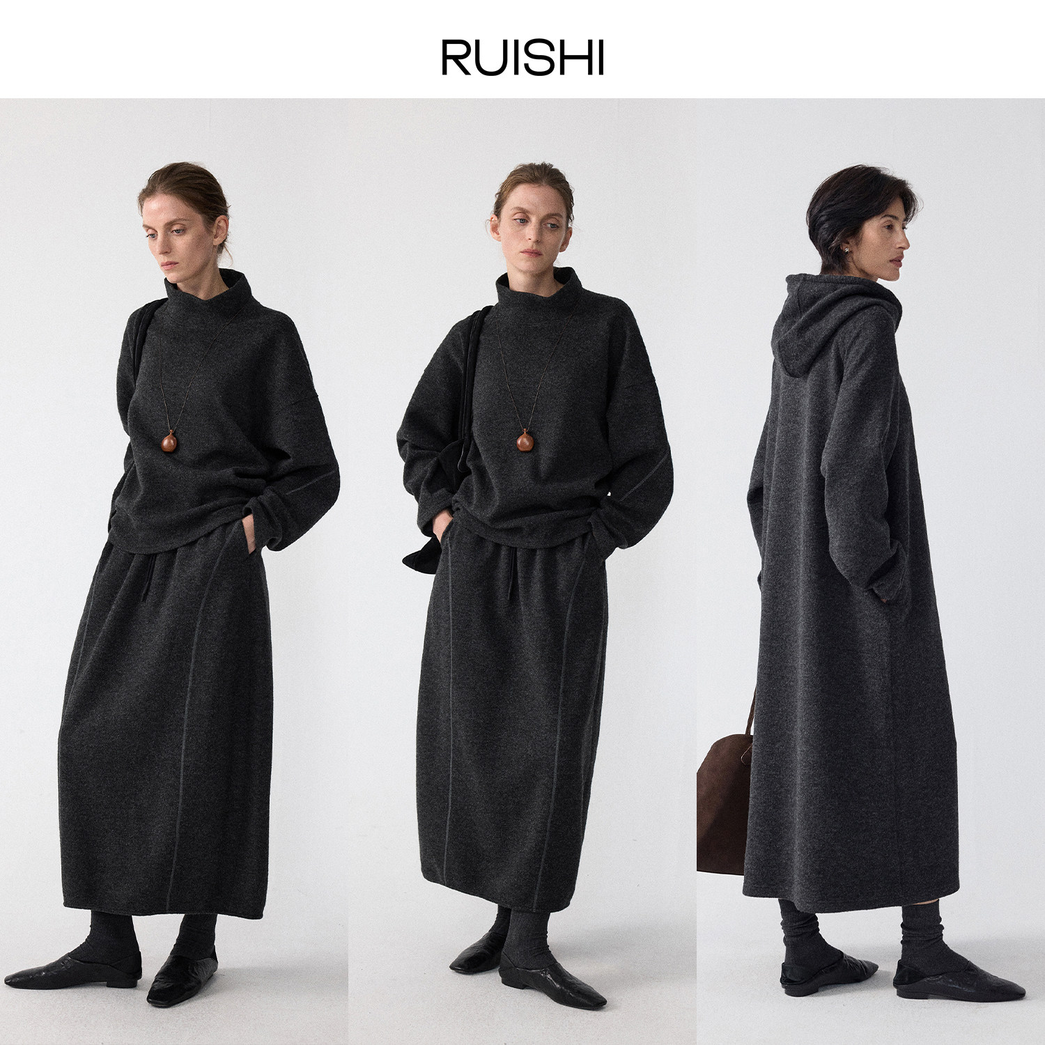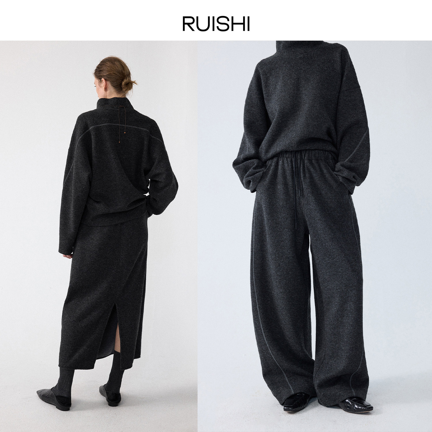 RUISHI芮时“淡人胶囊套装”羊毛混纺卫衣/半裙/裤子/连衣裙女冬