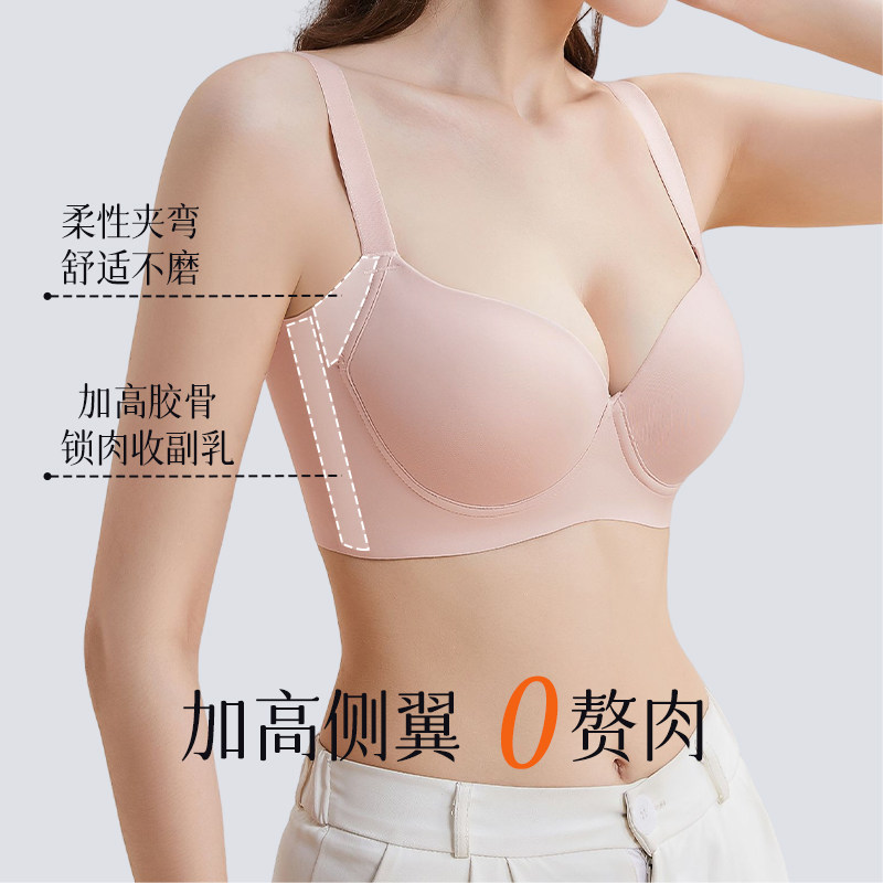 女儿腰无痕内衣女大胸显小胸聚拢收副乳防下垂上托调整型光面文胸