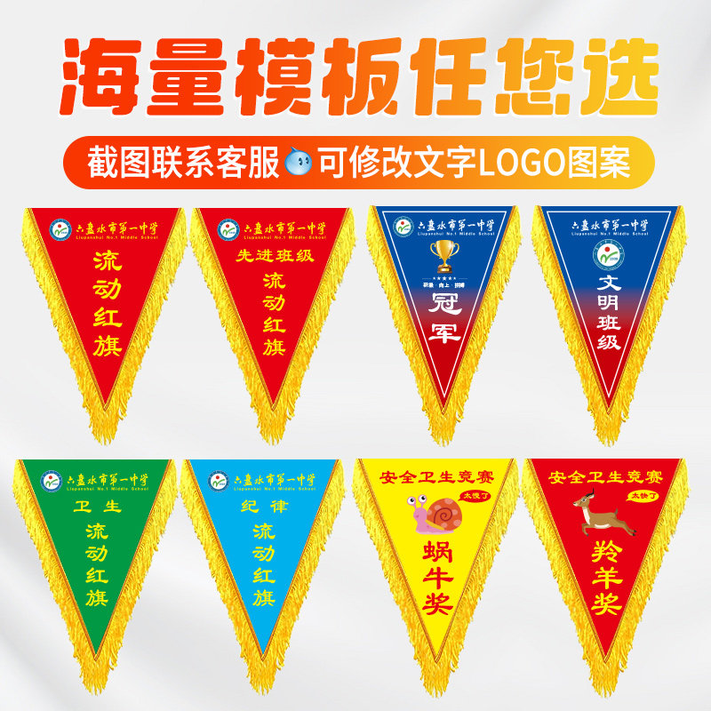 定制三角流动红旗文明优秀班级宿舍学校评比定做贡缎小锦旗卫生纪律交换旗足球俱乐部队旗公司奖旗5S纪念礼品