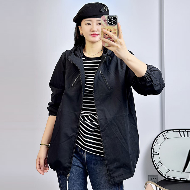 米莱奇秋季连帽外套女宽松大码女装2025新款韩版百搭显瘦风衣5801