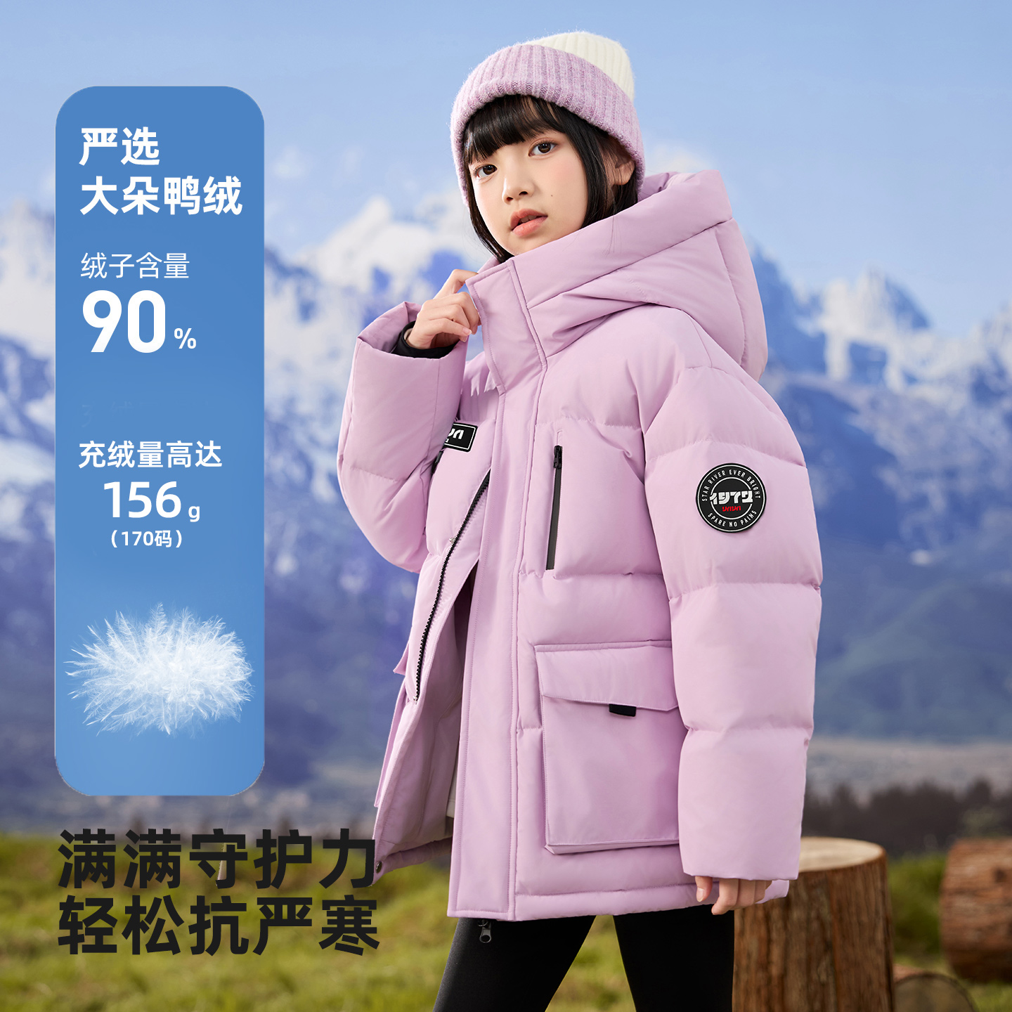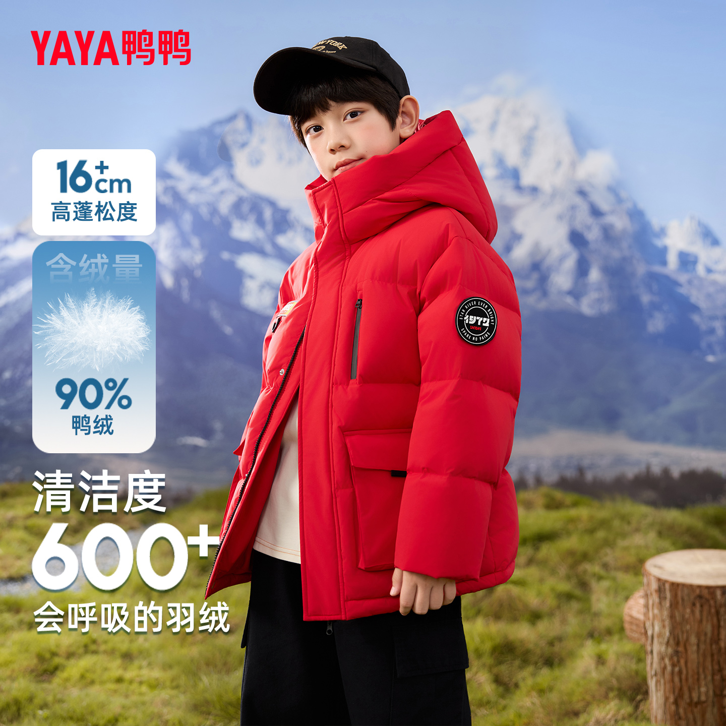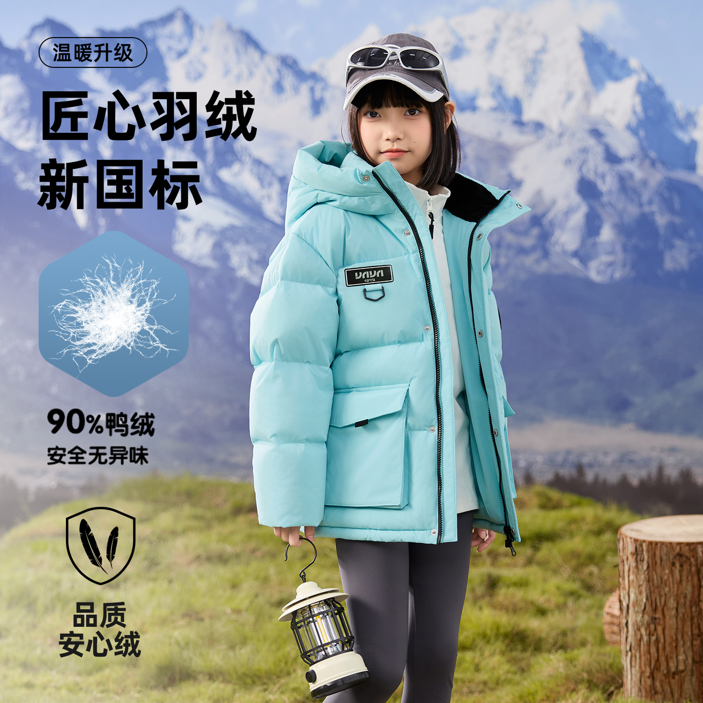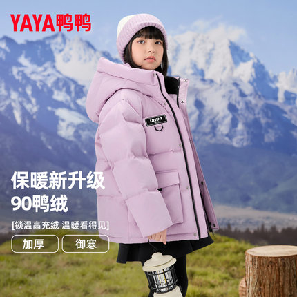 鸭鸭官方儿童羽绒服2025冬季新款保暖连帽女童三防极寒厚短款外套