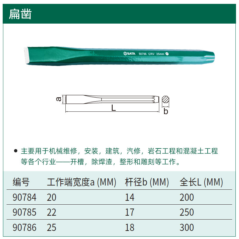 世达扁凿木工凿合金扁凿90755/90782/90783/90784/90785/90786
