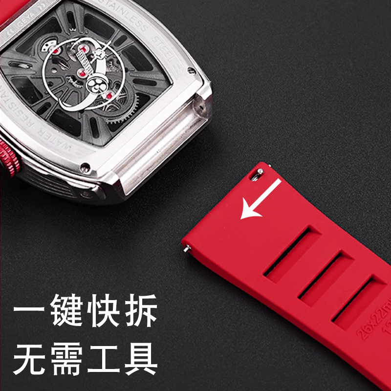 适配GEYA格雅航天联名款8253G 8251G系列长城酒桶型硅胶表带26mm