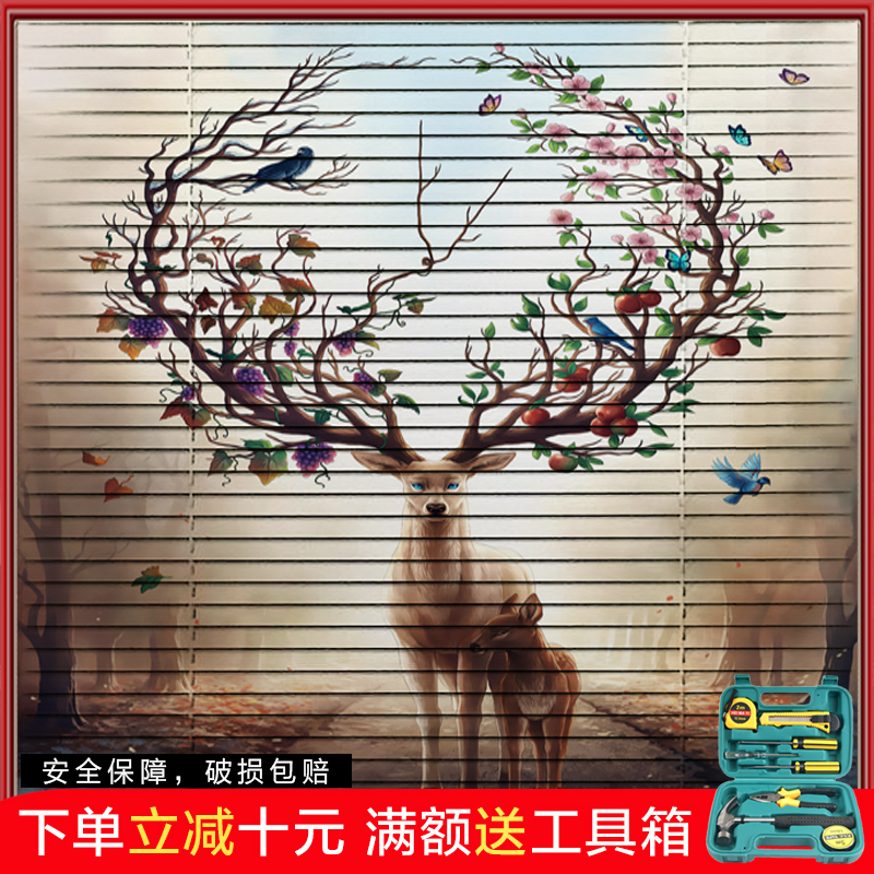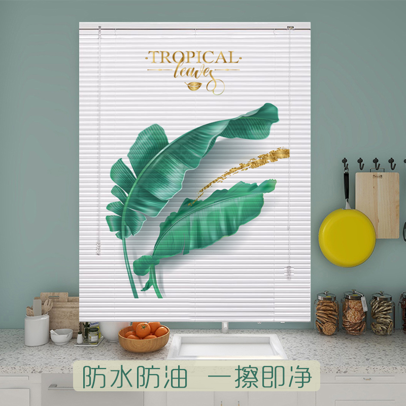 铝合金百叶窗帘印花厨房防油办公室日式遮光升降卫生间免打孔卷帘