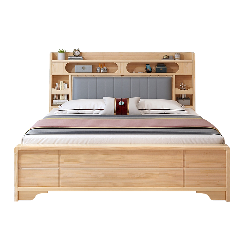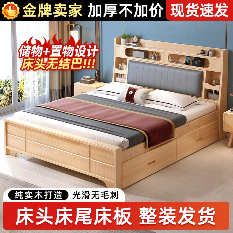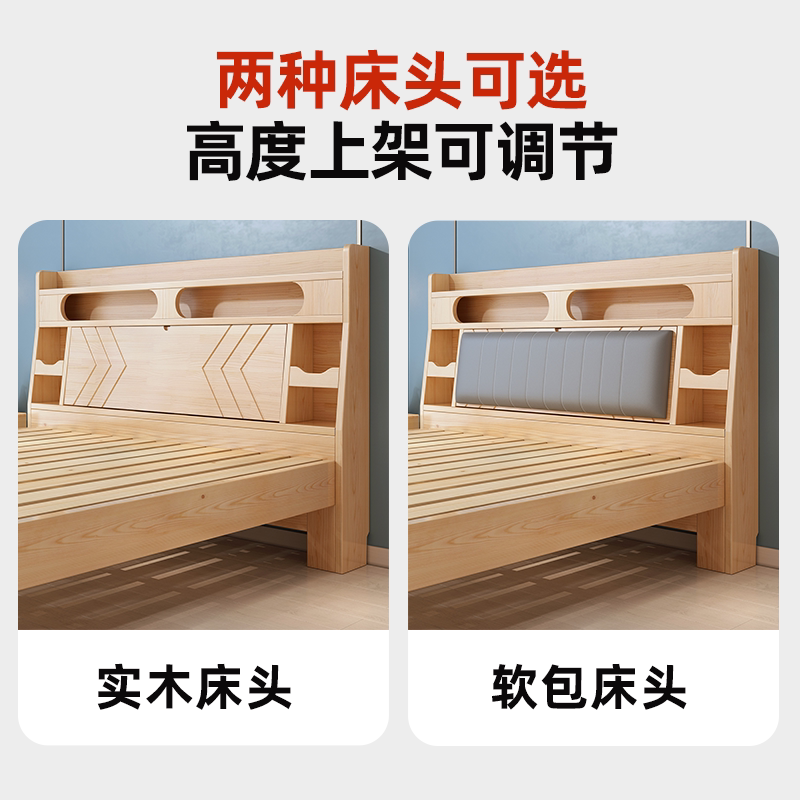 全实木床现代简约卧室1.8双人储物松木床软包主卧出租房1.5单人床
