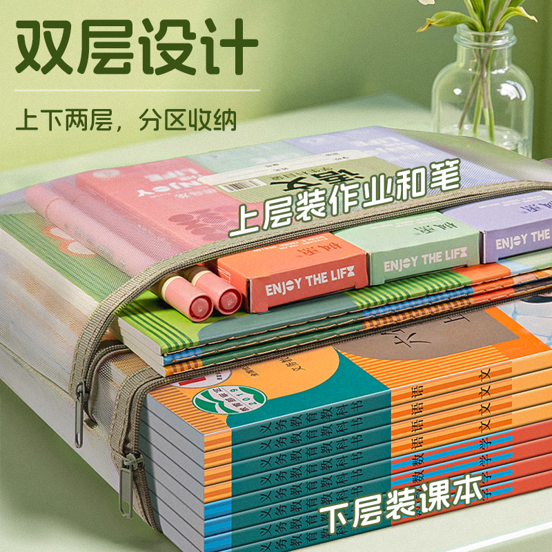 学科科目分类文件袋子资料学习袋课本卷子作业各科分科手提网纱小学生拉链式双层大容量试卷收纳袋拎书袋