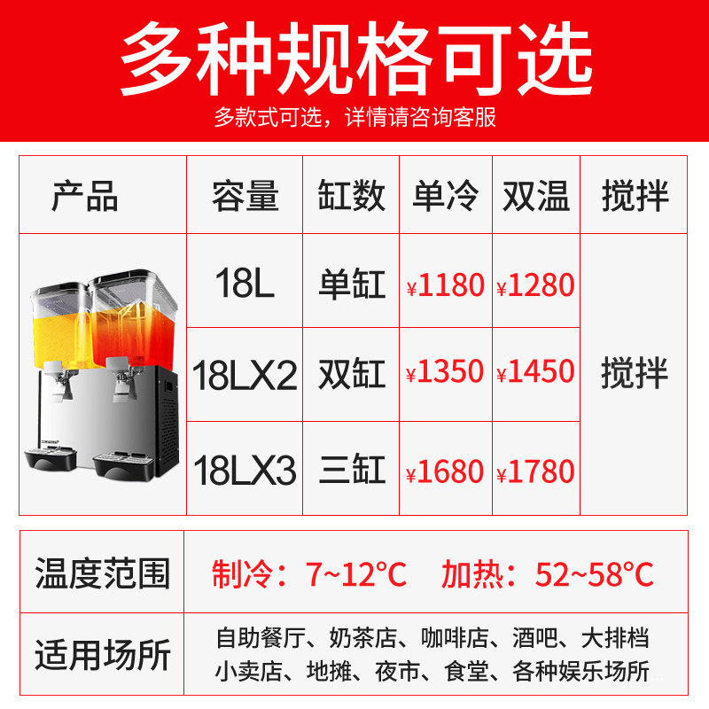 美莱特饮料机三缸小型冷饮机商用自助餐现调冷热全自动双缸果汁机