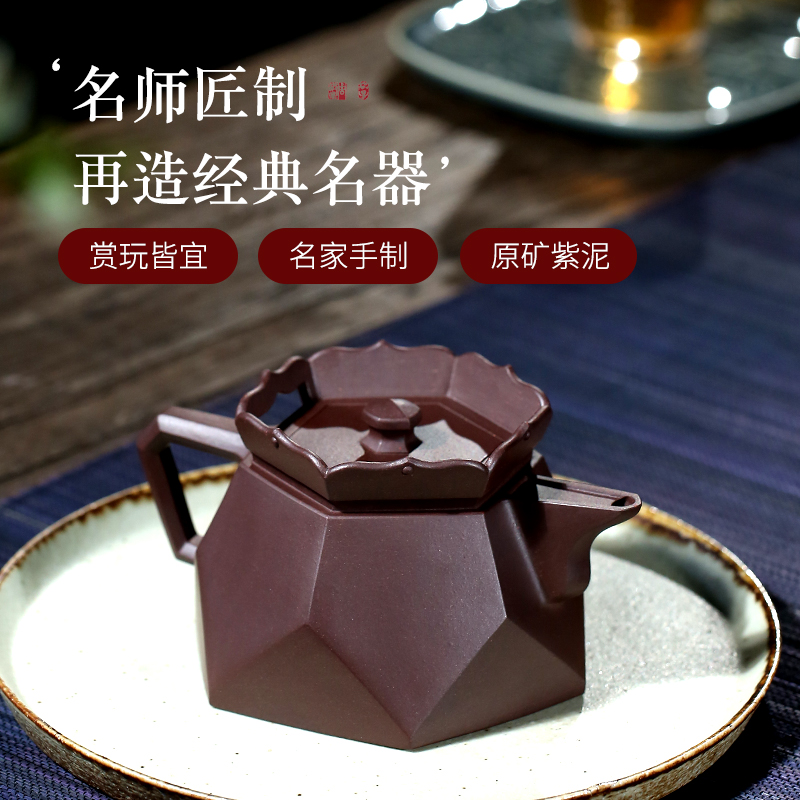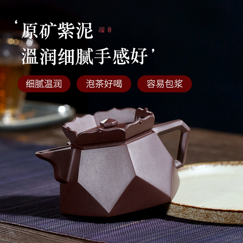 和泥有缘 宜兴紫砂壶原矿老紫泥全手工钻石僧帽泡茶壶茶具套装