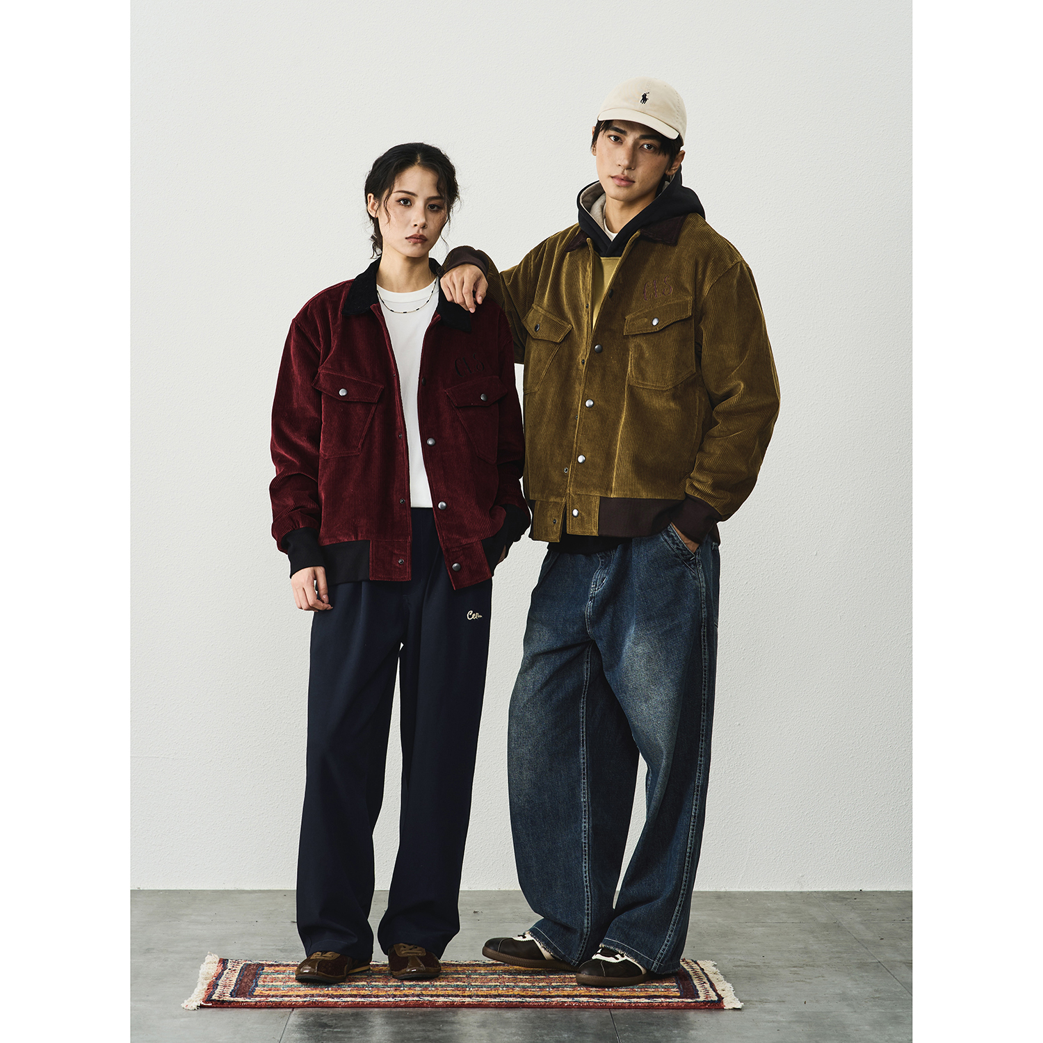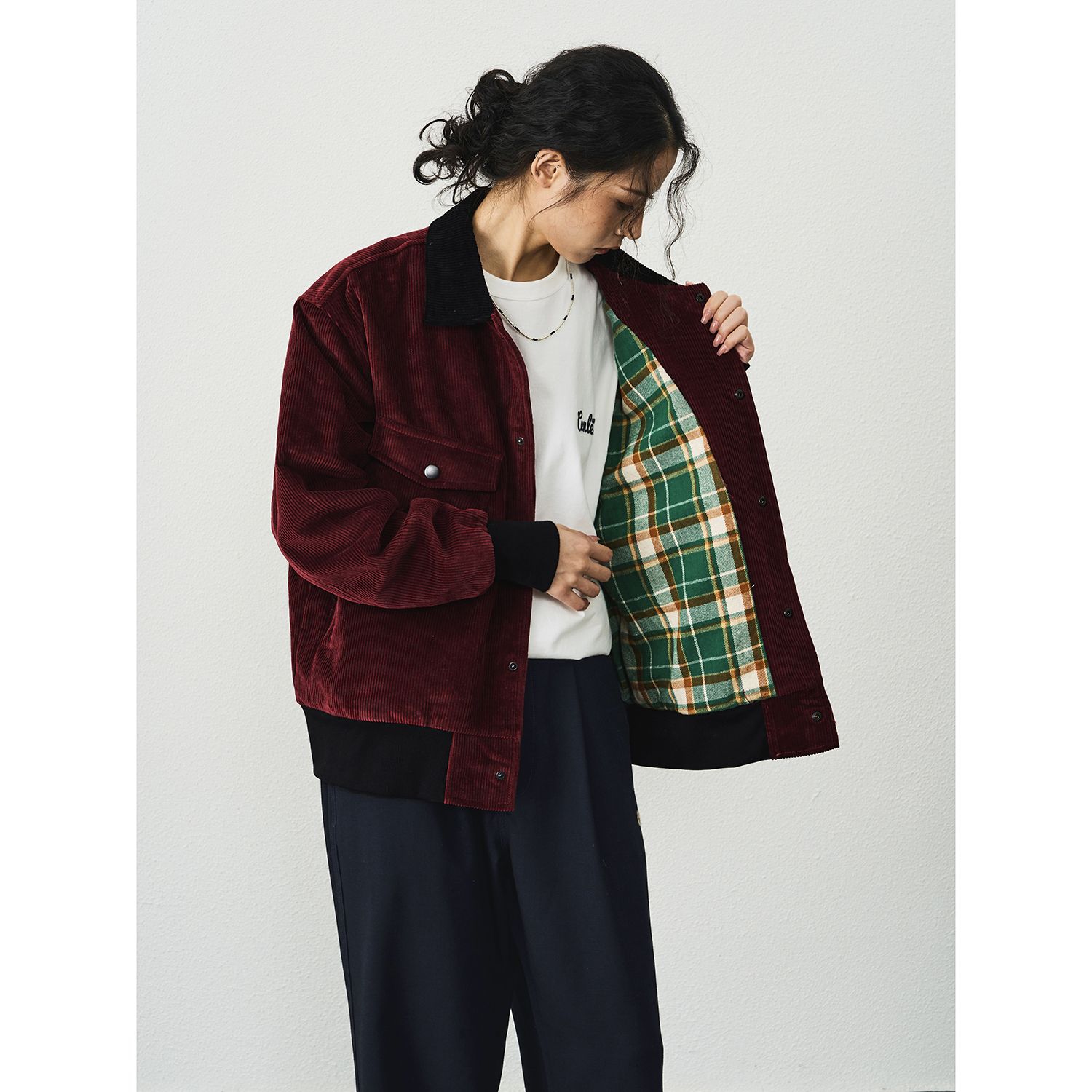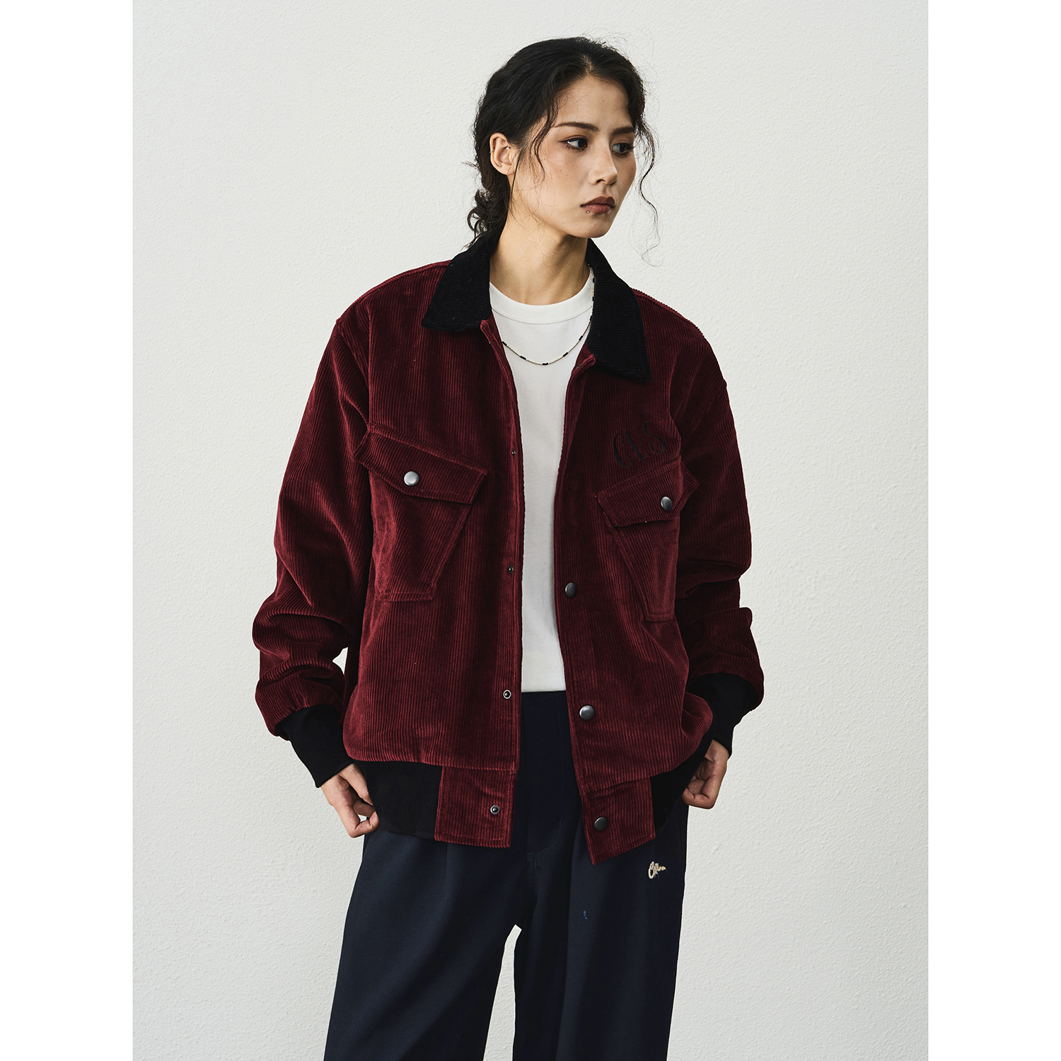 CENLES AW25 美式复古拼色短款灯芯绒外套男翻领休闲飞行员夹克
