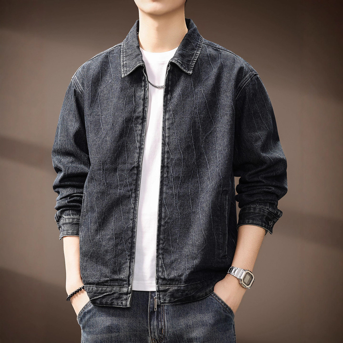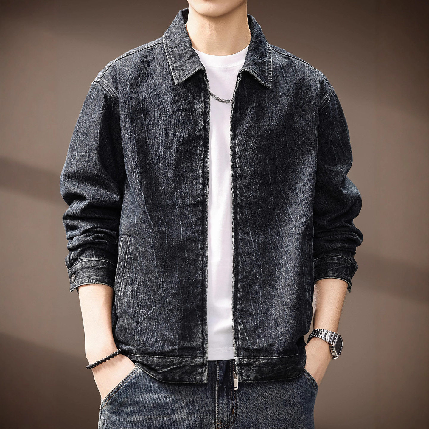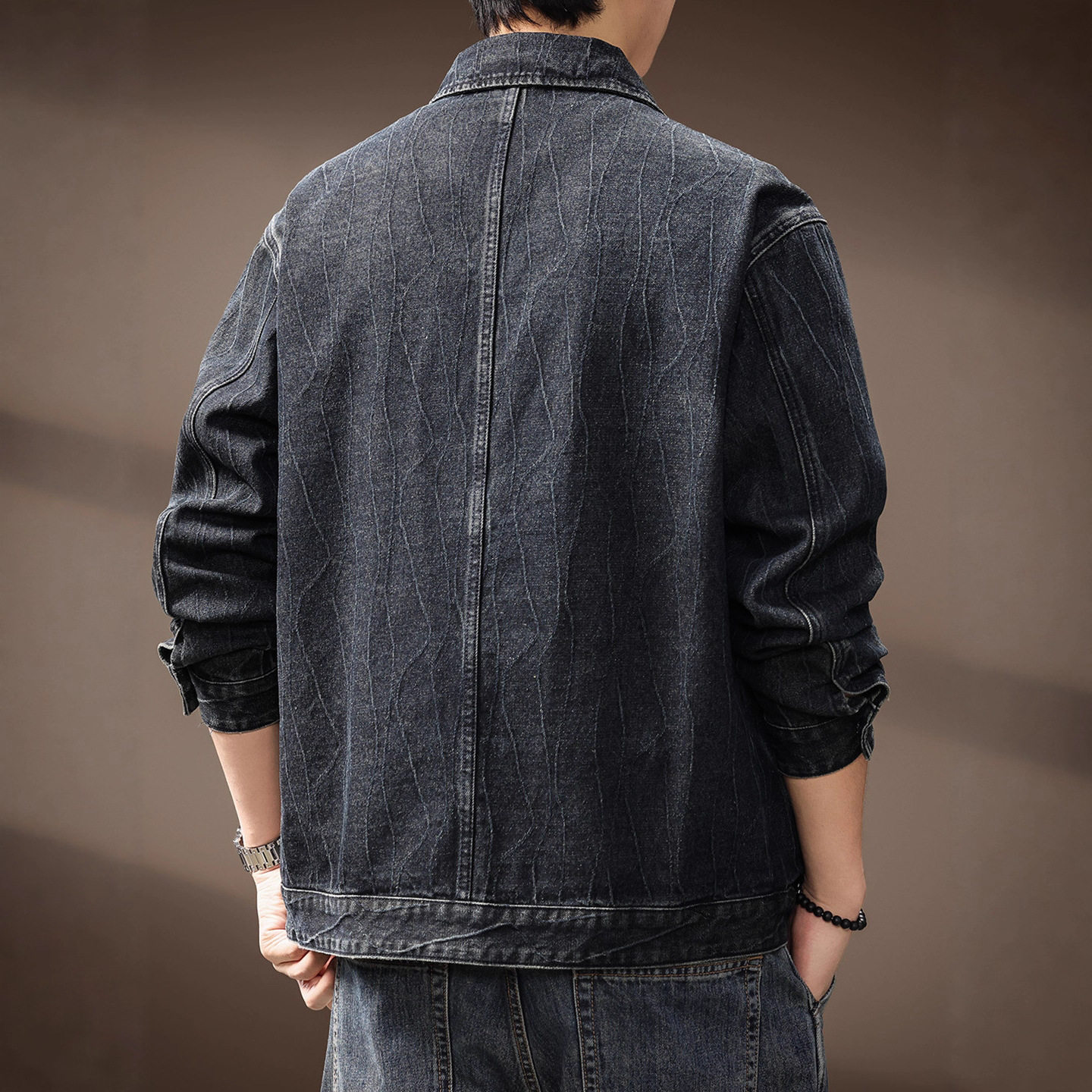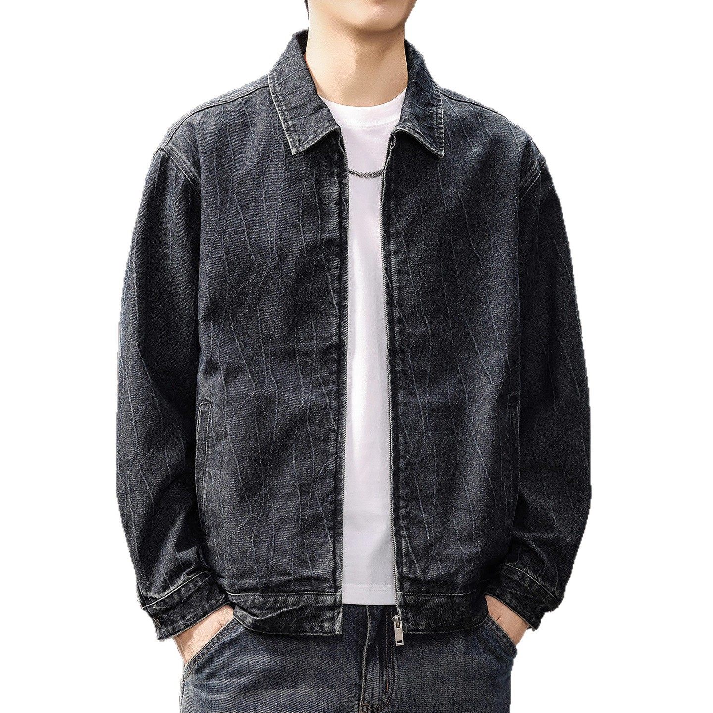 高定提花肌理潮牌牛仔外套男士
