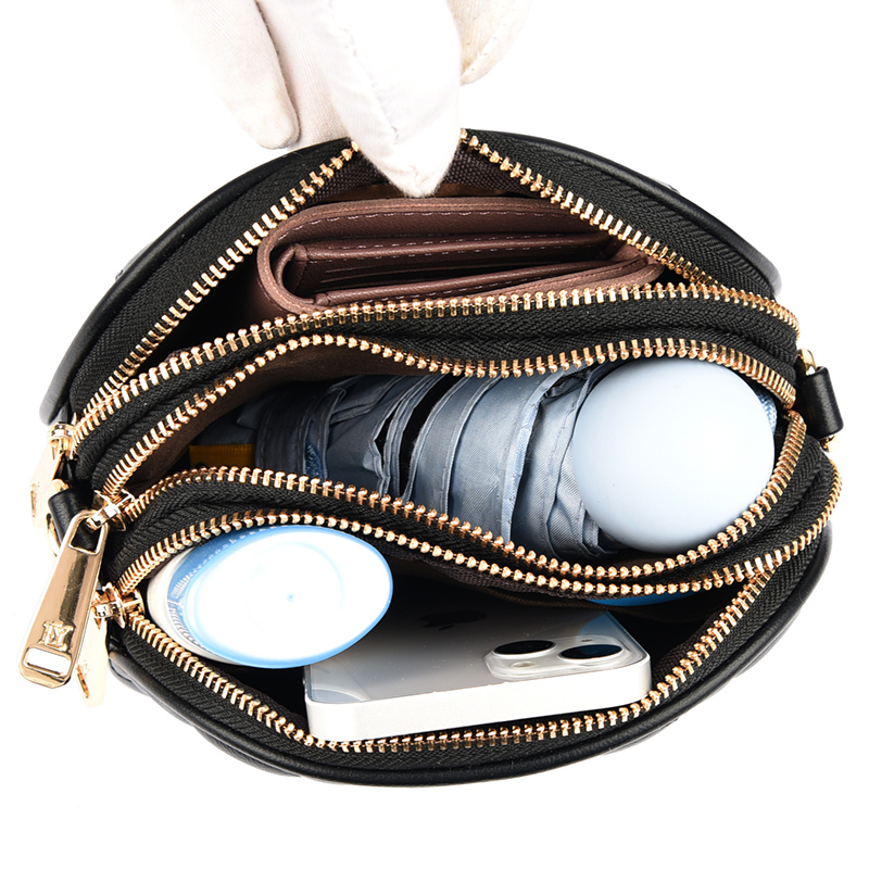 真皮包包女2025新款女包时尚百搭单肩斜挎包高级感软皮多层小圆包