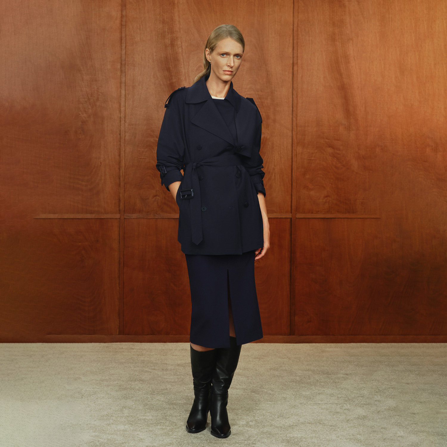OVVOutlet秋冬热卖女装经典翻领双排牛角扣短款羊毛风衣