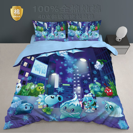 植物大战僵尸纯棉床品3四件套床单床笠定制全棉儿童被套学生宿舍2