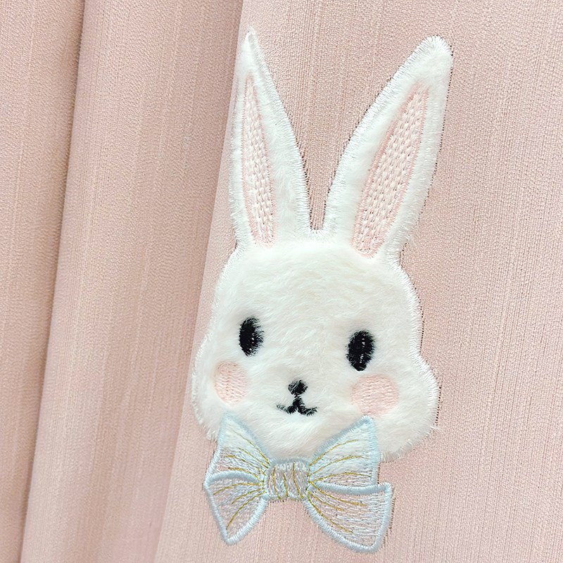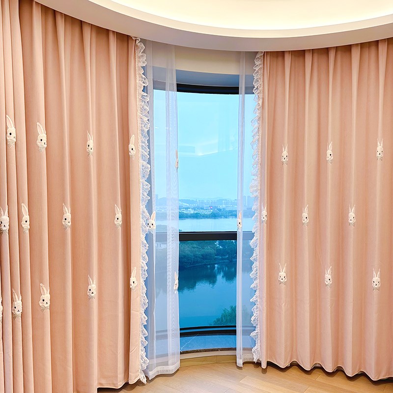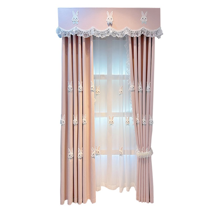 雪尼尔兔子公主可爱卡通粉色儿童房窗帘女孩卧室女生飘窗遮光定制