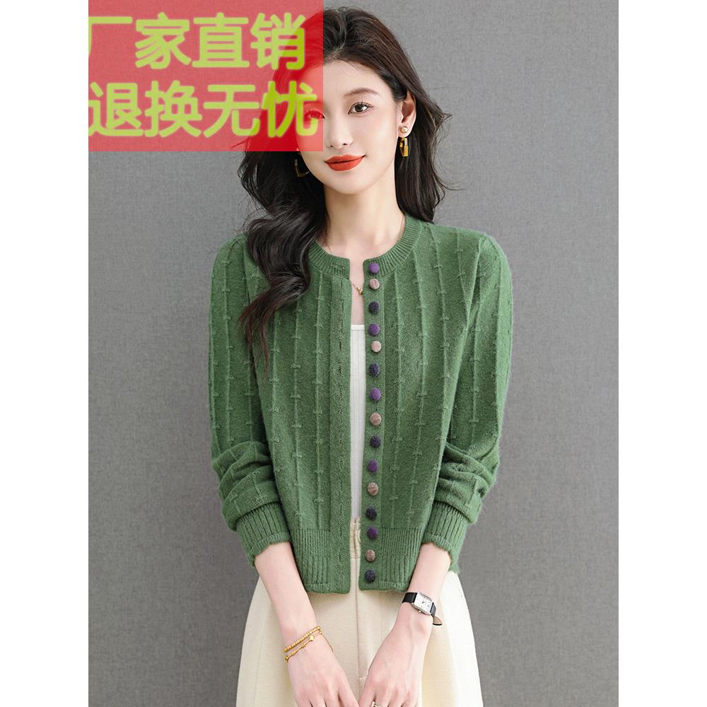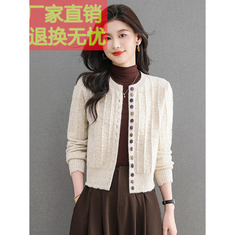 2025春秋新款圆领针织羊毛开衫女时尚减龄显瘦百搭短款毛衣小外搭