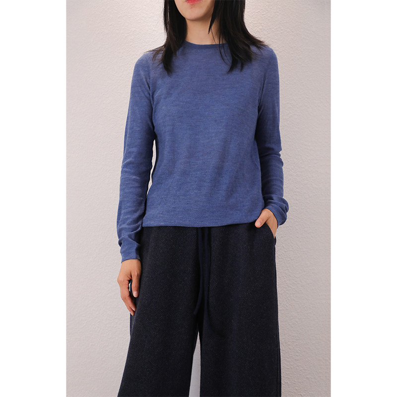 东雍 微透美学 精纺80支简约百搭圆领薄款羊绒针织基础套头打底衫