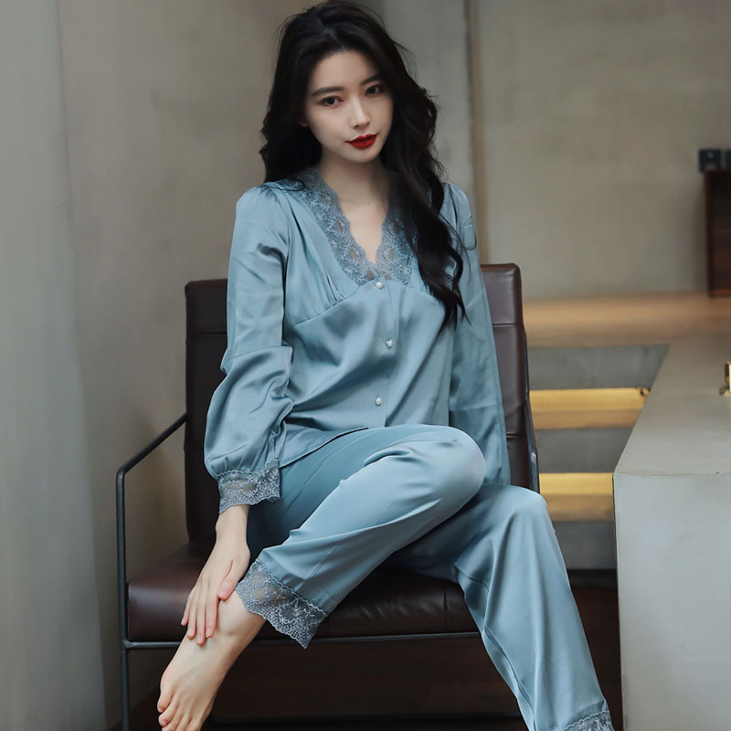 桑蚕丝真丝睡衣女 高级感花边甜美风格秋冬季薄款家居服套装