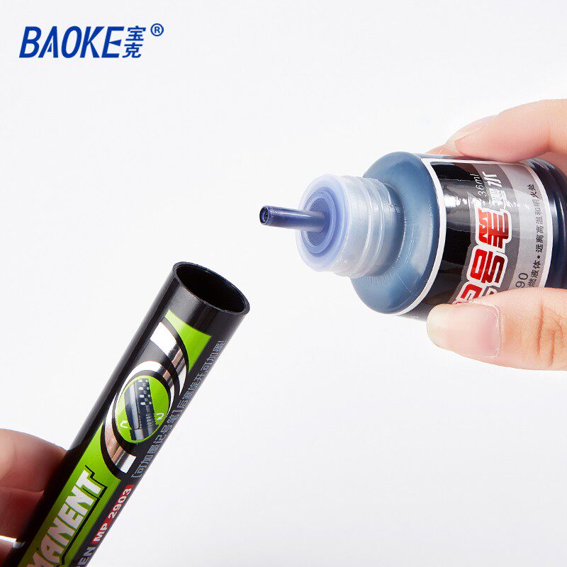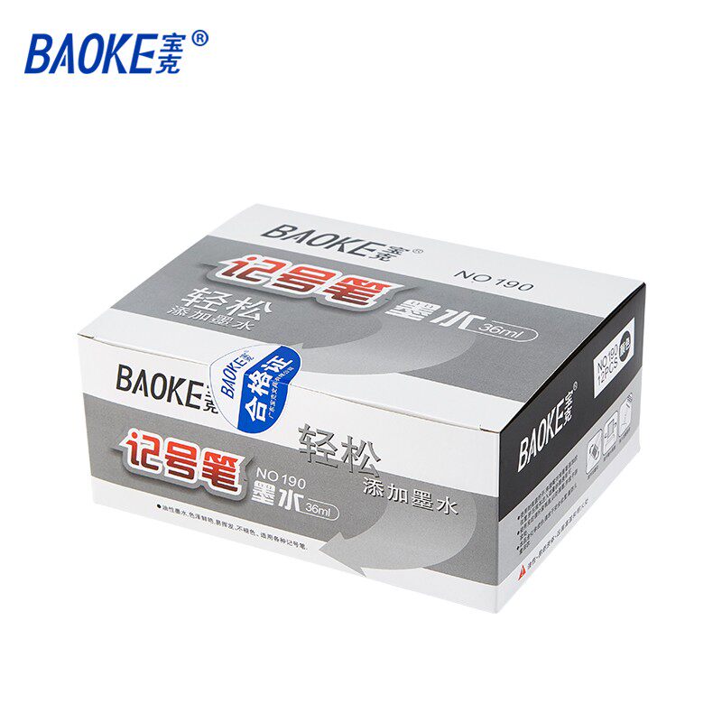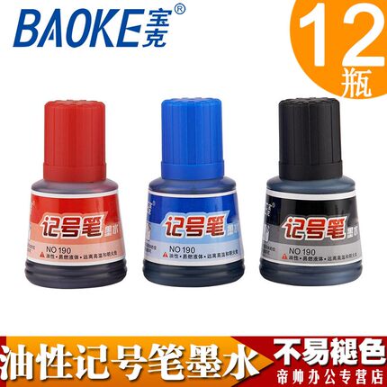 宝克190油性大头笔记号笔墨水 补充液黑色红色蓝色12瓶盒装防水不