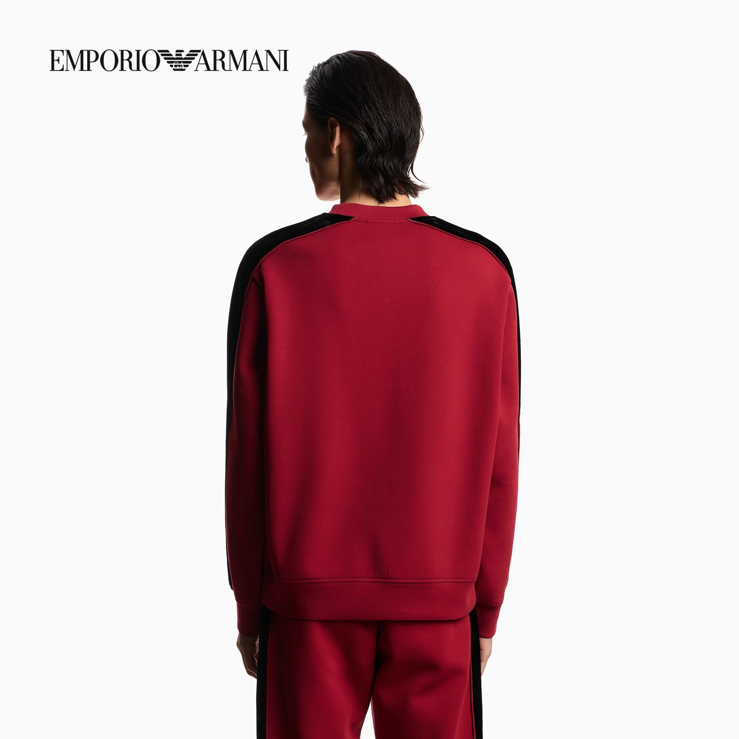 阿玛尼男士圆领拼接刺绣休闲卫衣