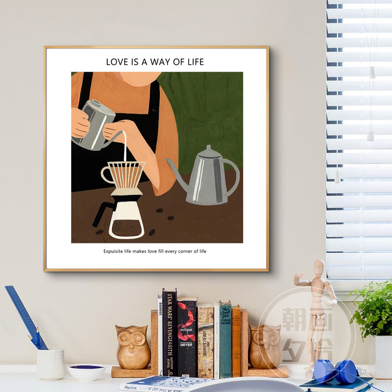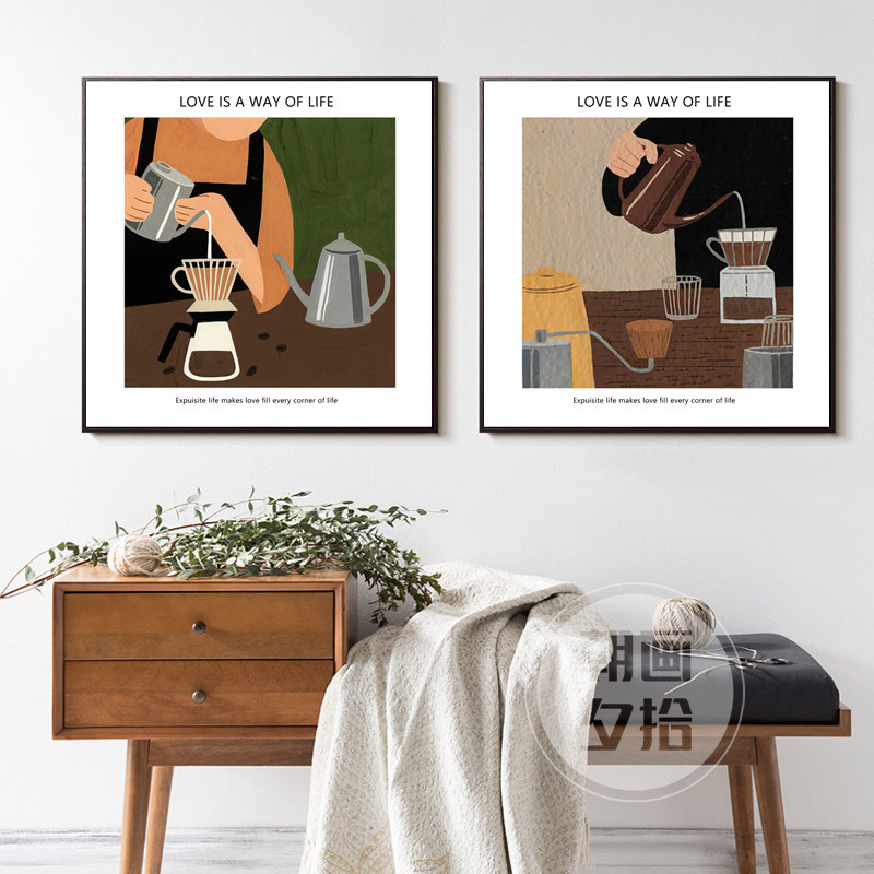 现代简约咖啡馆装饰画饮品店水吧台挂画餐厅北欧风复古艺术背景墙