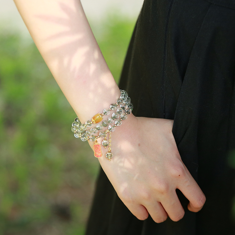 灵机生活馆绿幽灵手链吉祥物3多圈水晶聚宝盆手串星月叠戴
