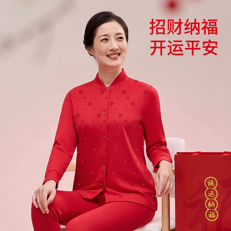 2026老人纯棉男士秋衣秋裤套装本命年妈妈大红色爸爸开衫保暖内衣