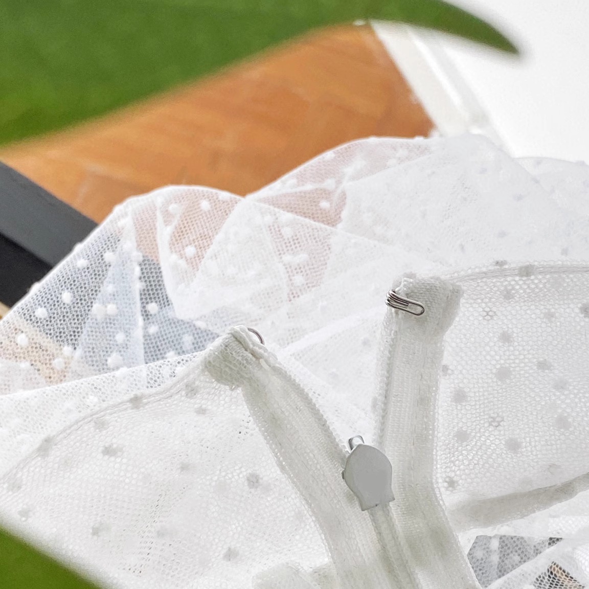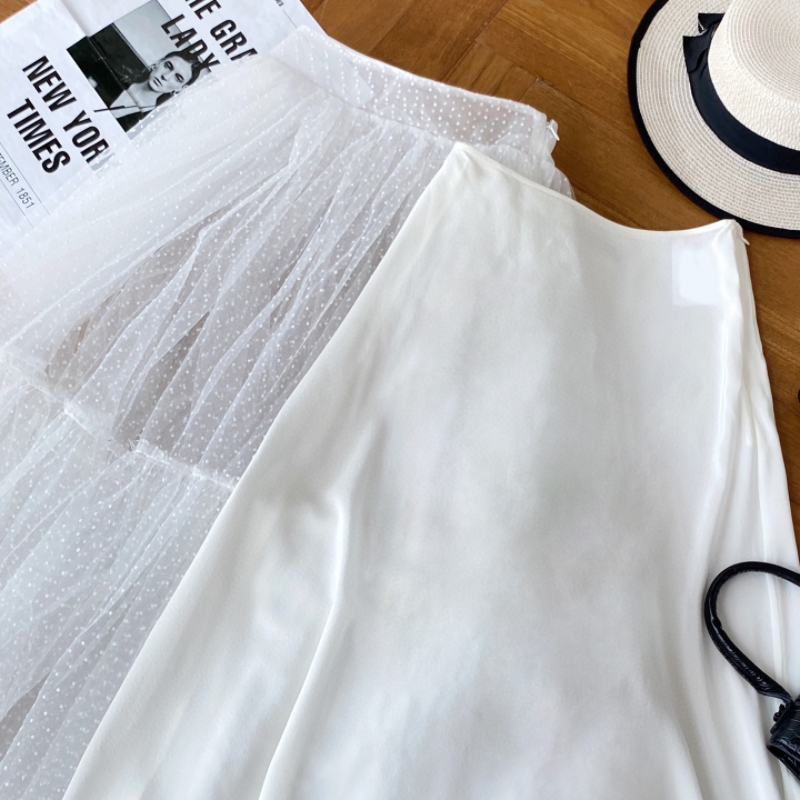 D家小姐网纱裙半身裙女中长款2025夏装百搭a字裙高腰波点植绒长裙