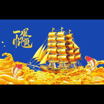 鱼缸背景贴纸一帆风顺高清壁纸水族箱造景装饰自粘防水免胶静电贴