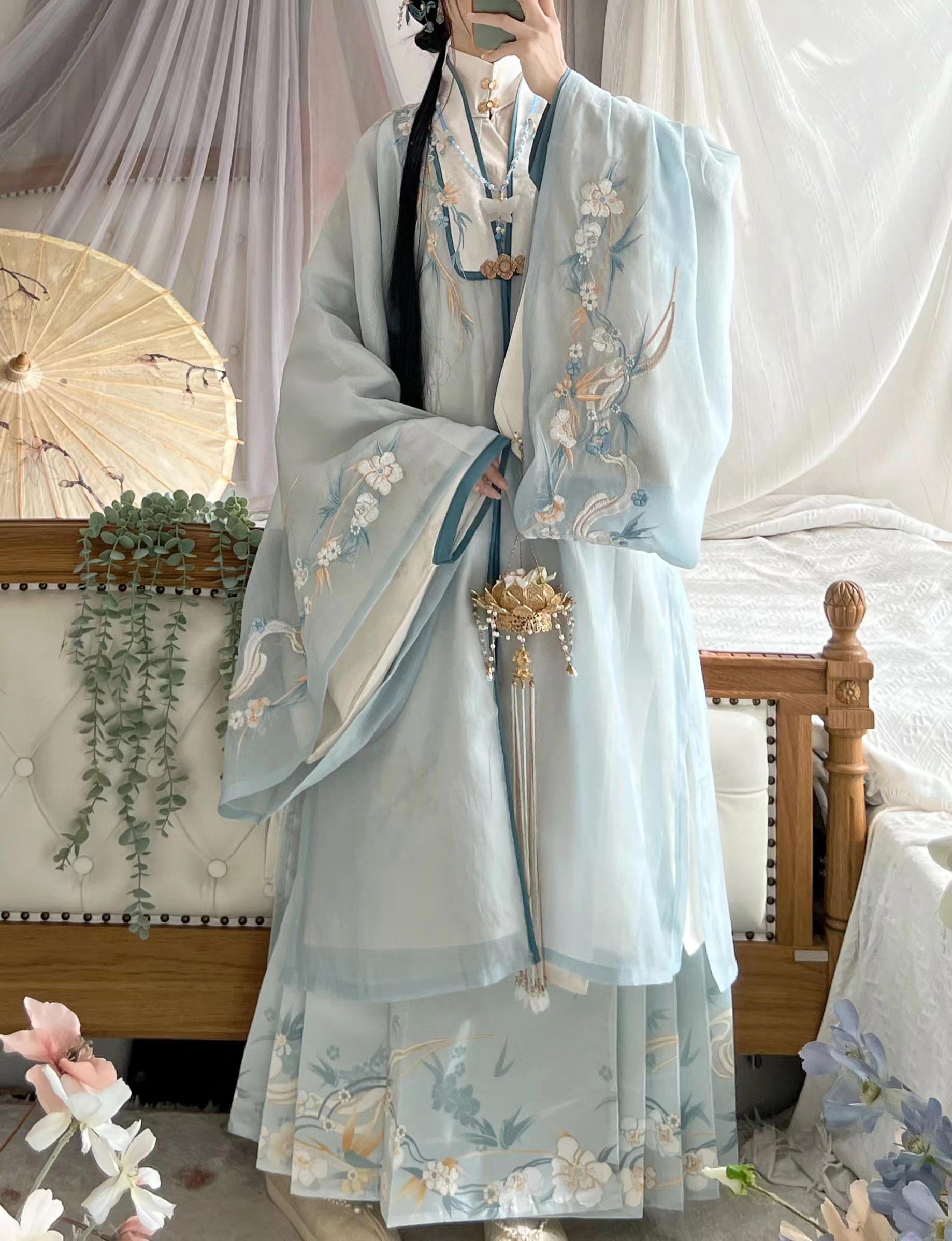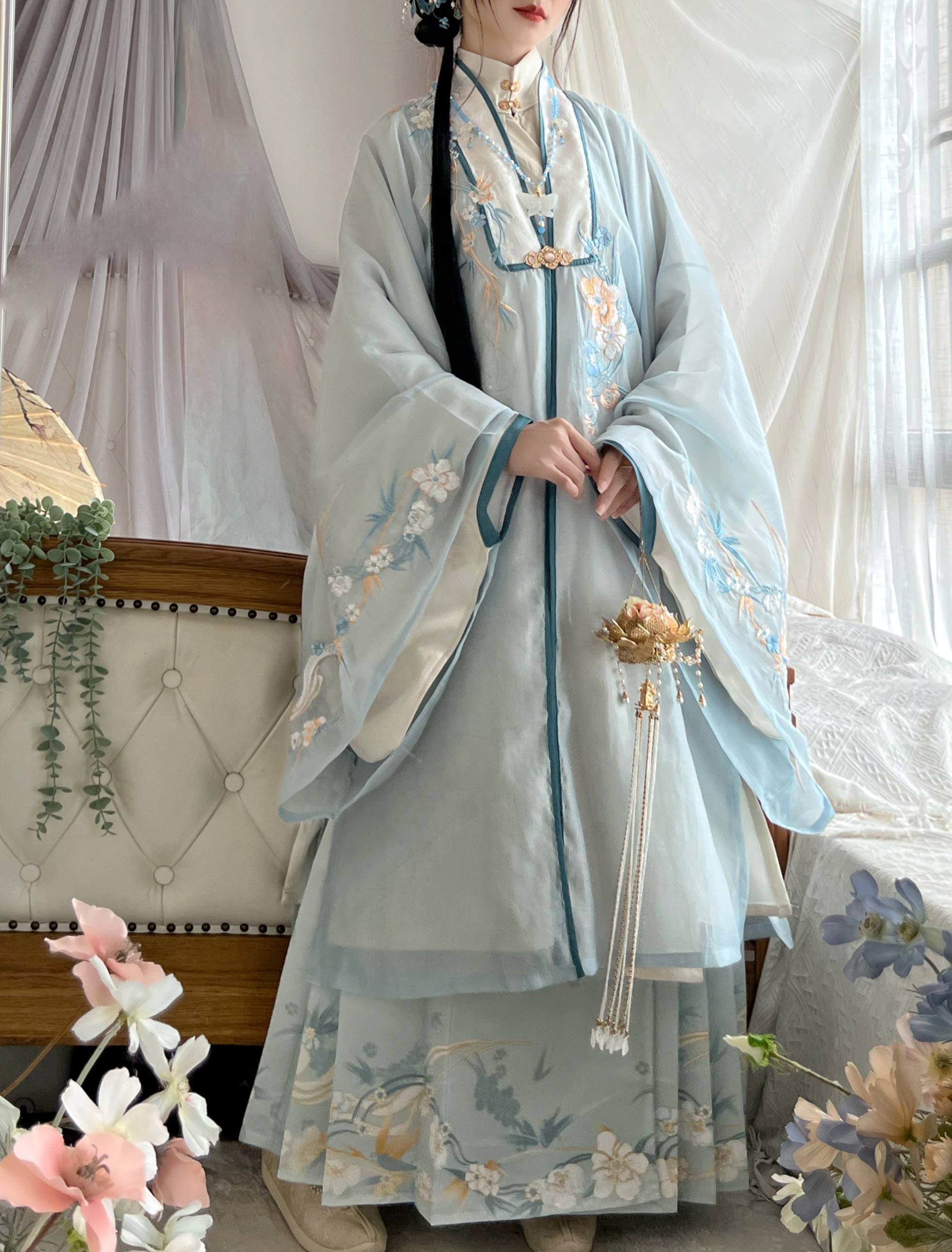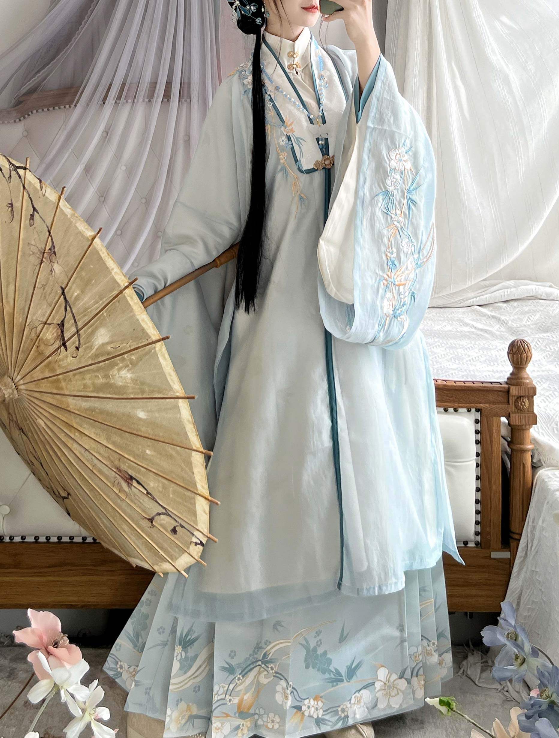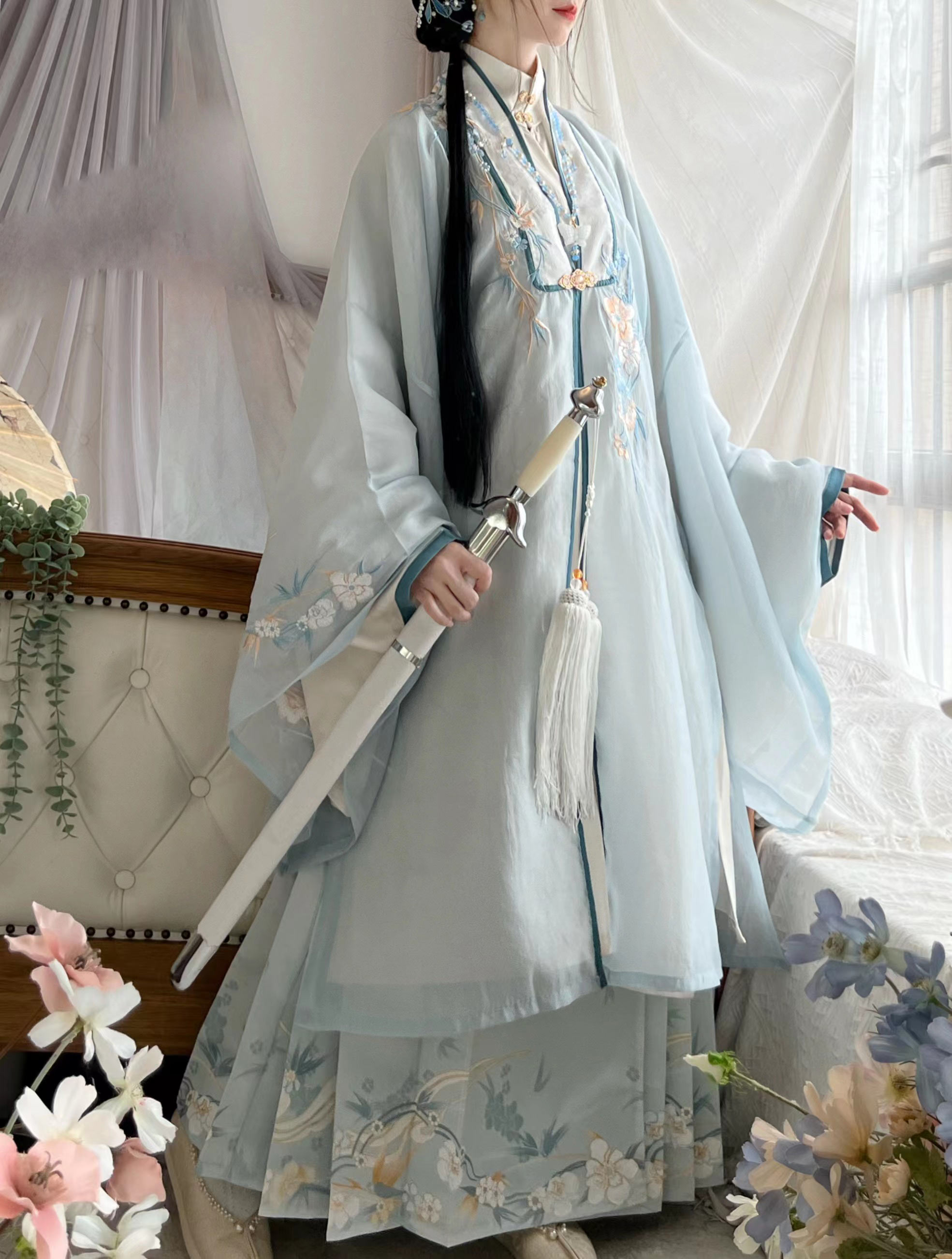 佐馨原创汉服【春茶兰馨】明制立领长衫一片式马面裙重工绣花春夏