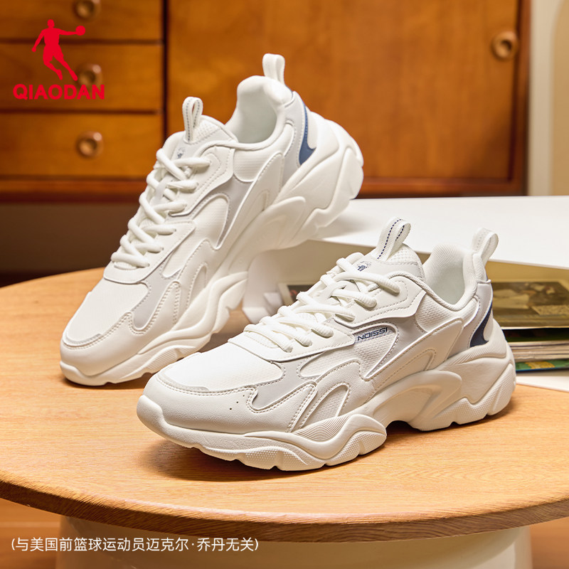 乔丹皮面防水休闲鞋男鞋2026春季轻便老爹鞋增高厚底网面运动鞋子