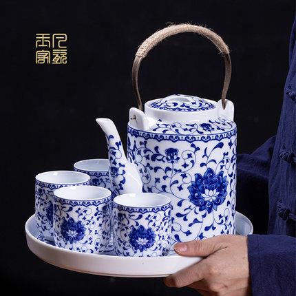 陶瓷茶壶茶具套装家用景德镇青花瓷中式大容量冷水壶凉水壶提梁壶