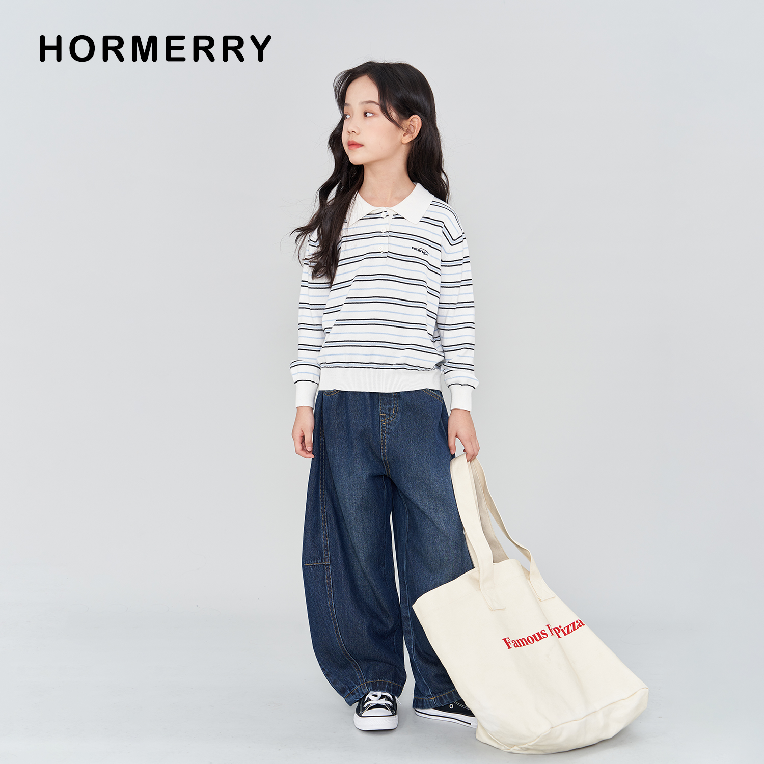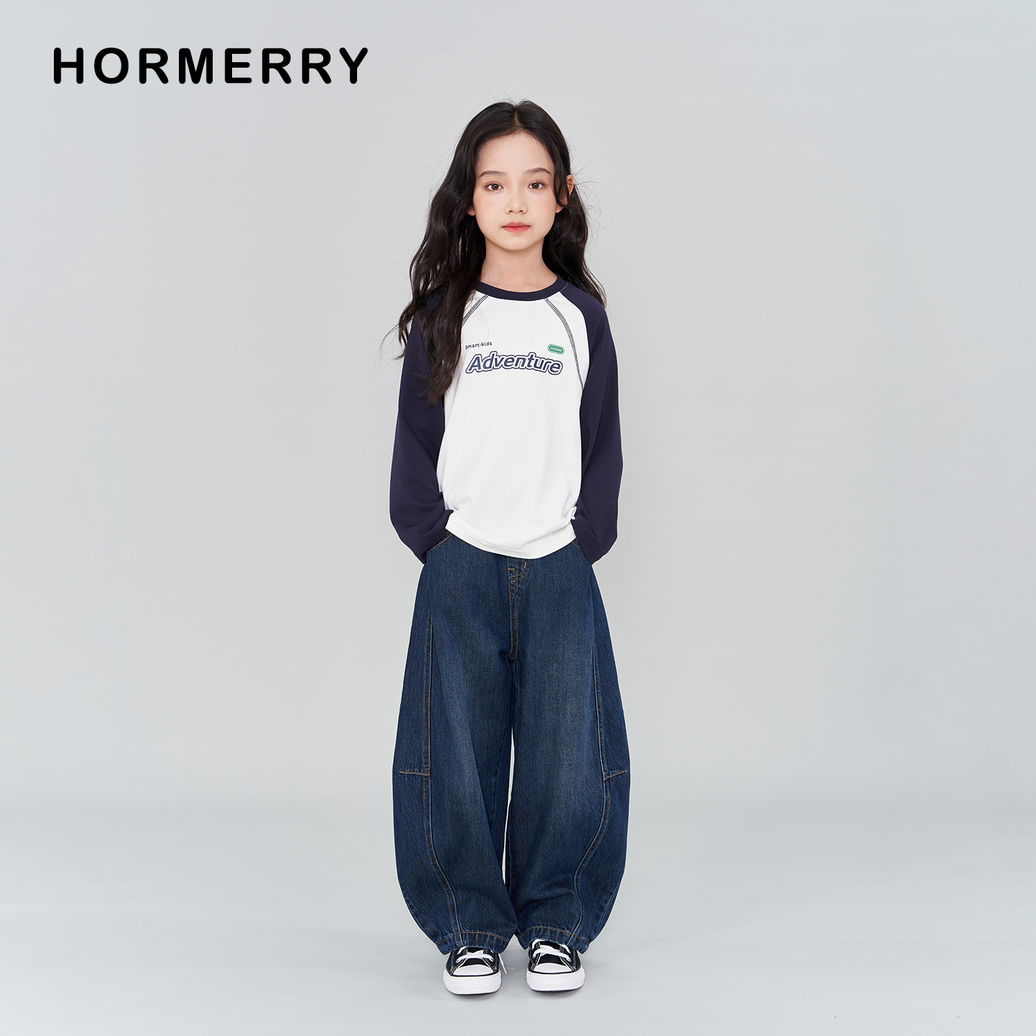 赫米童装2025秋冬新款儿童宽松大廓形弯刀牛仔裤中大童镰刀裤长裤