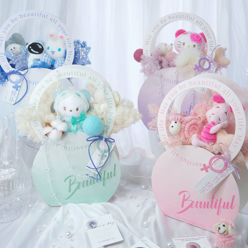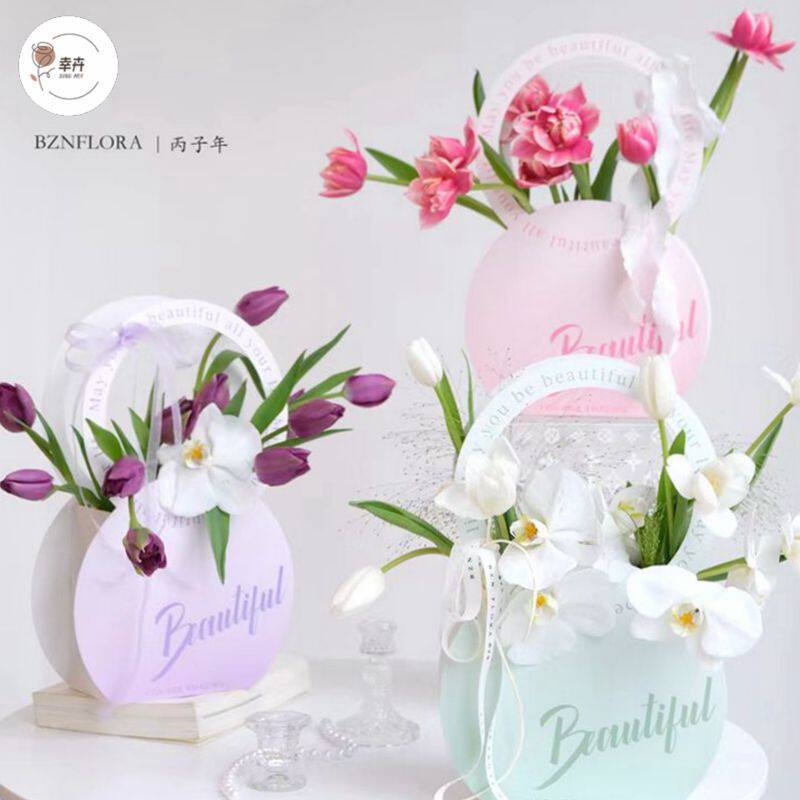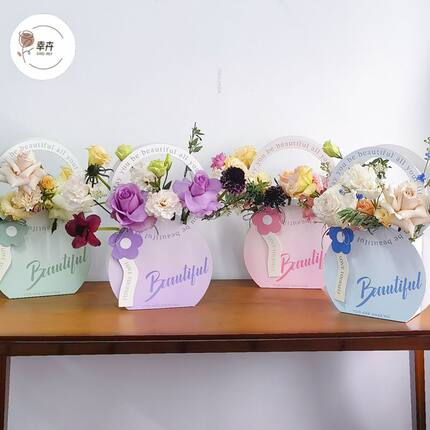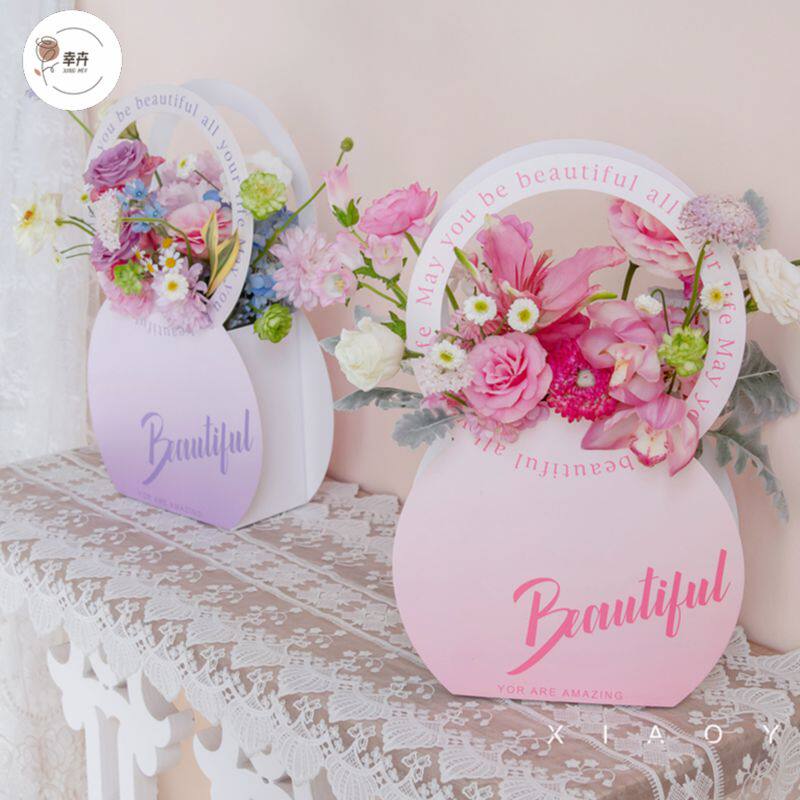 新款母亲节礼物花艺插花盒渐变系列手提盒花篮鲜花包装礼盒纸盒