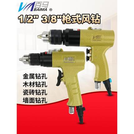 百马BM-F调速正反气动手枪式气钻风钻 1/2攻牙机攻丝机 钻孔机3/8