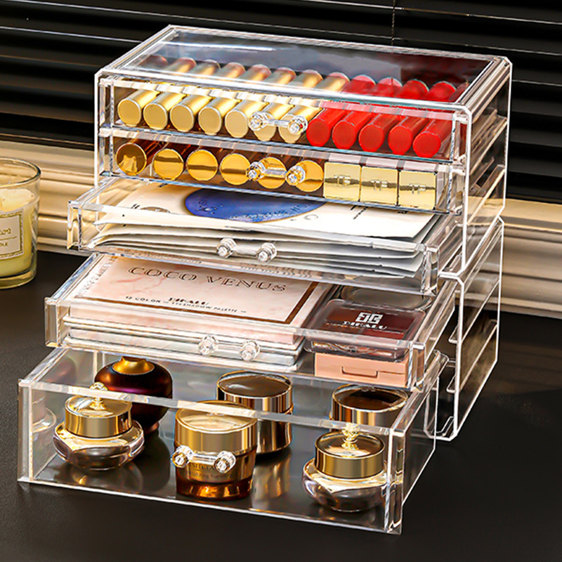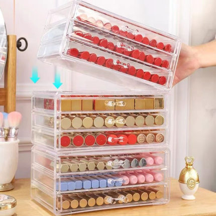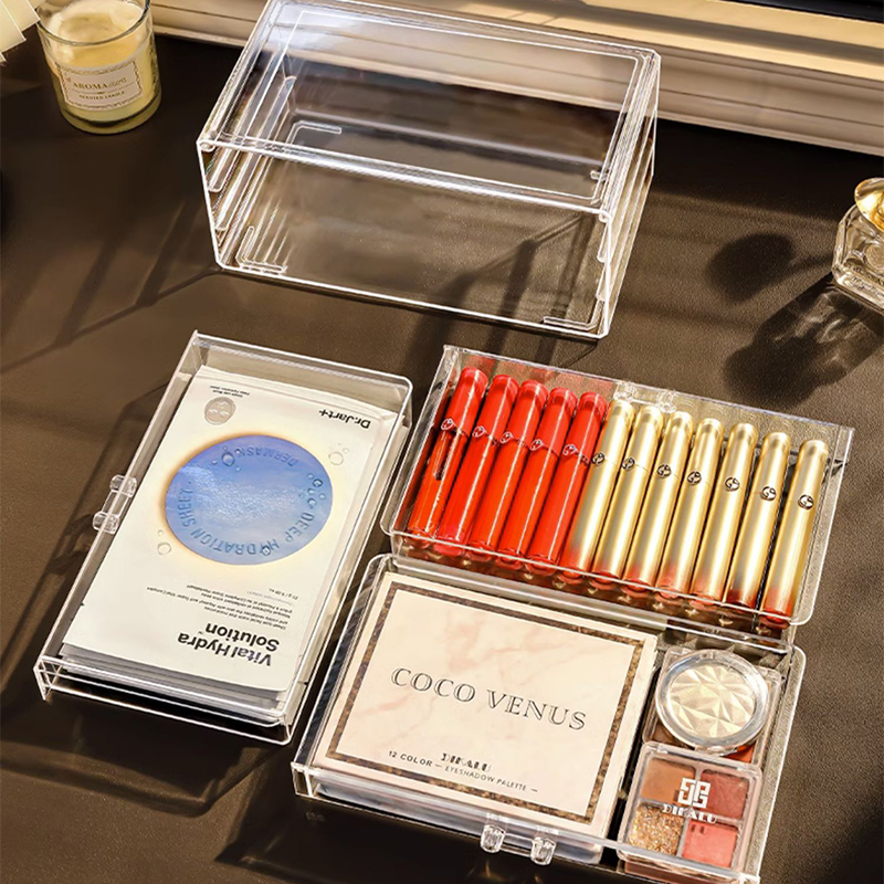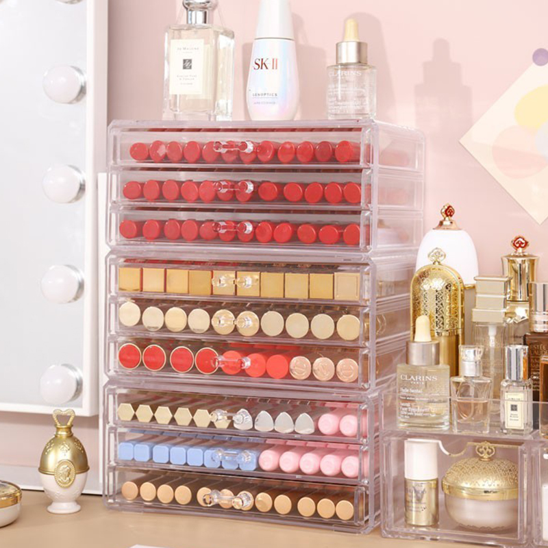 亚克力口红收纳盒桌面多格装化妆品收纳盒子带盖网红透明唇釉架子