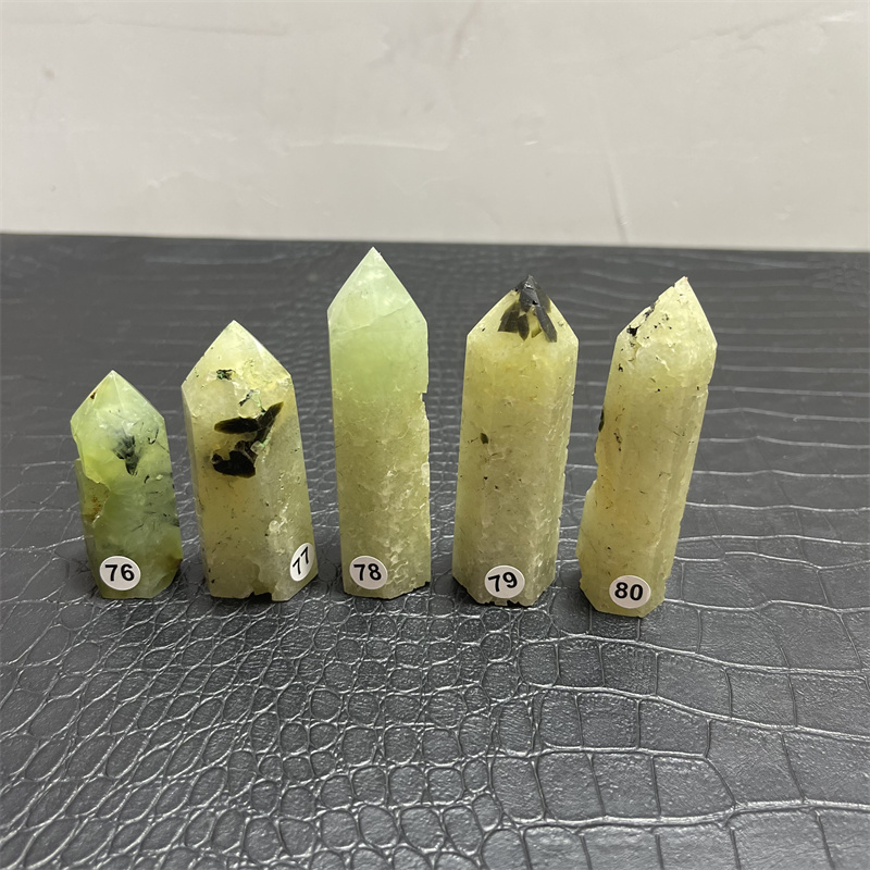 天然葡萄石柱子原石打磨单尖六棱柱绿发晶玛瑙洞家居装饰品摆件