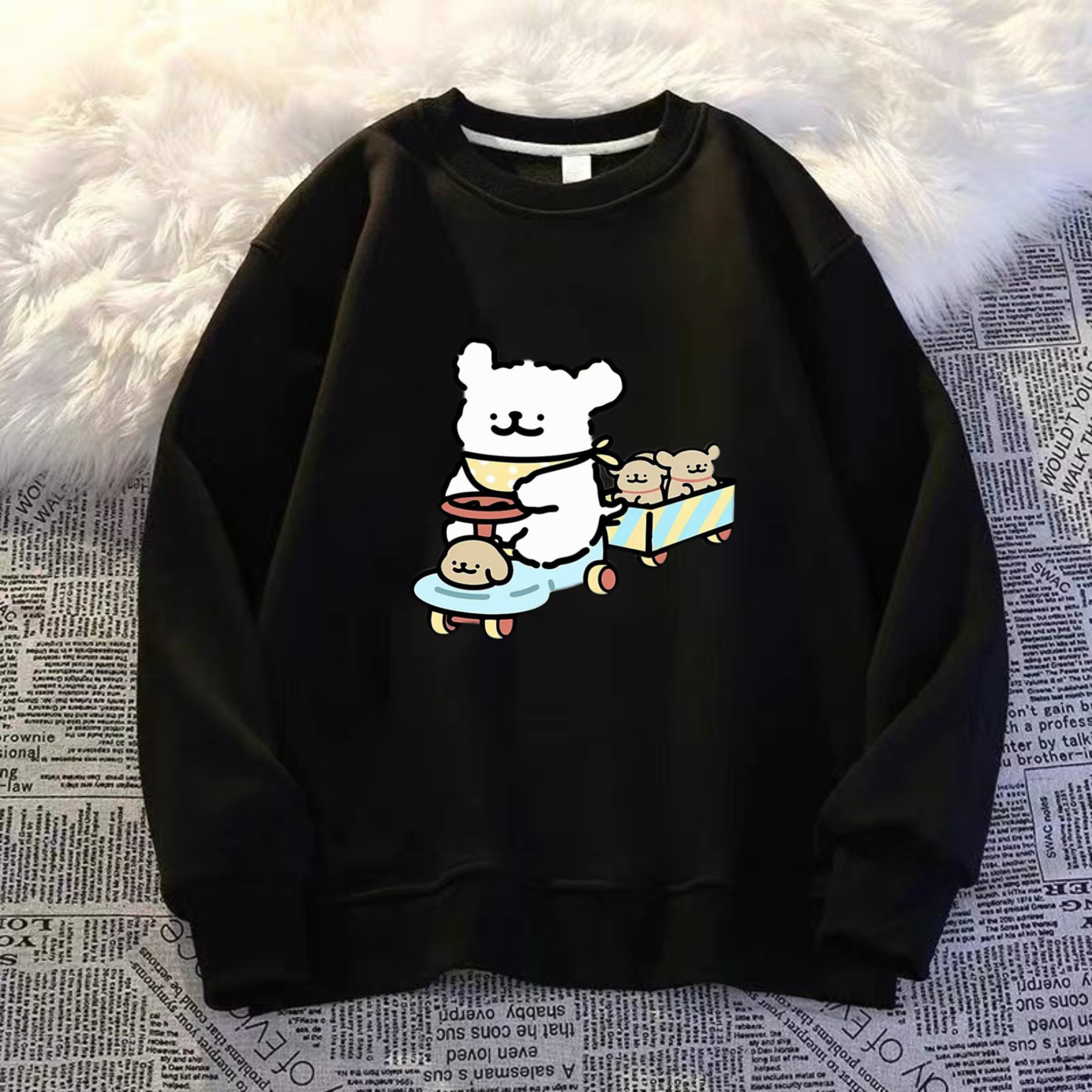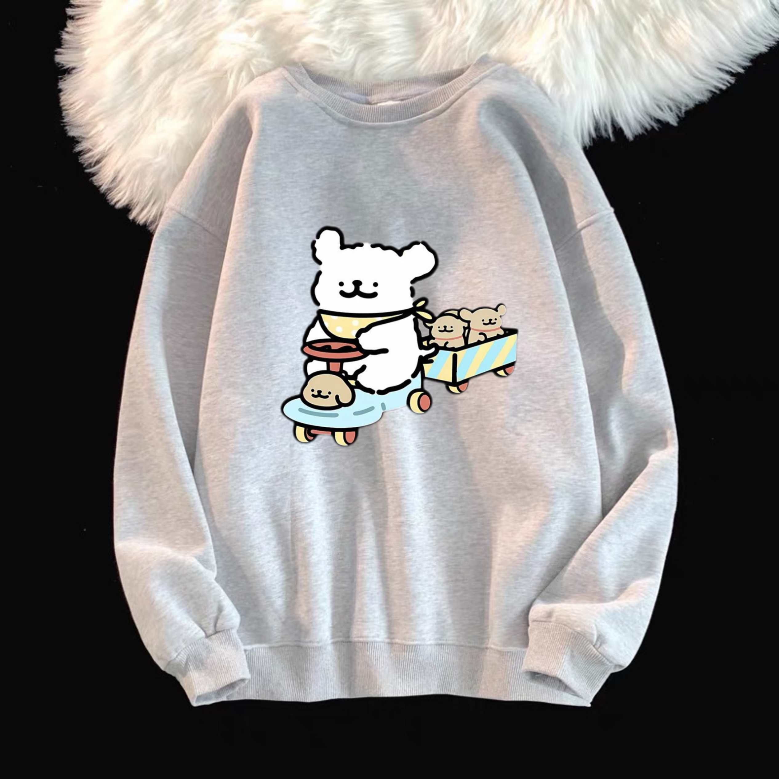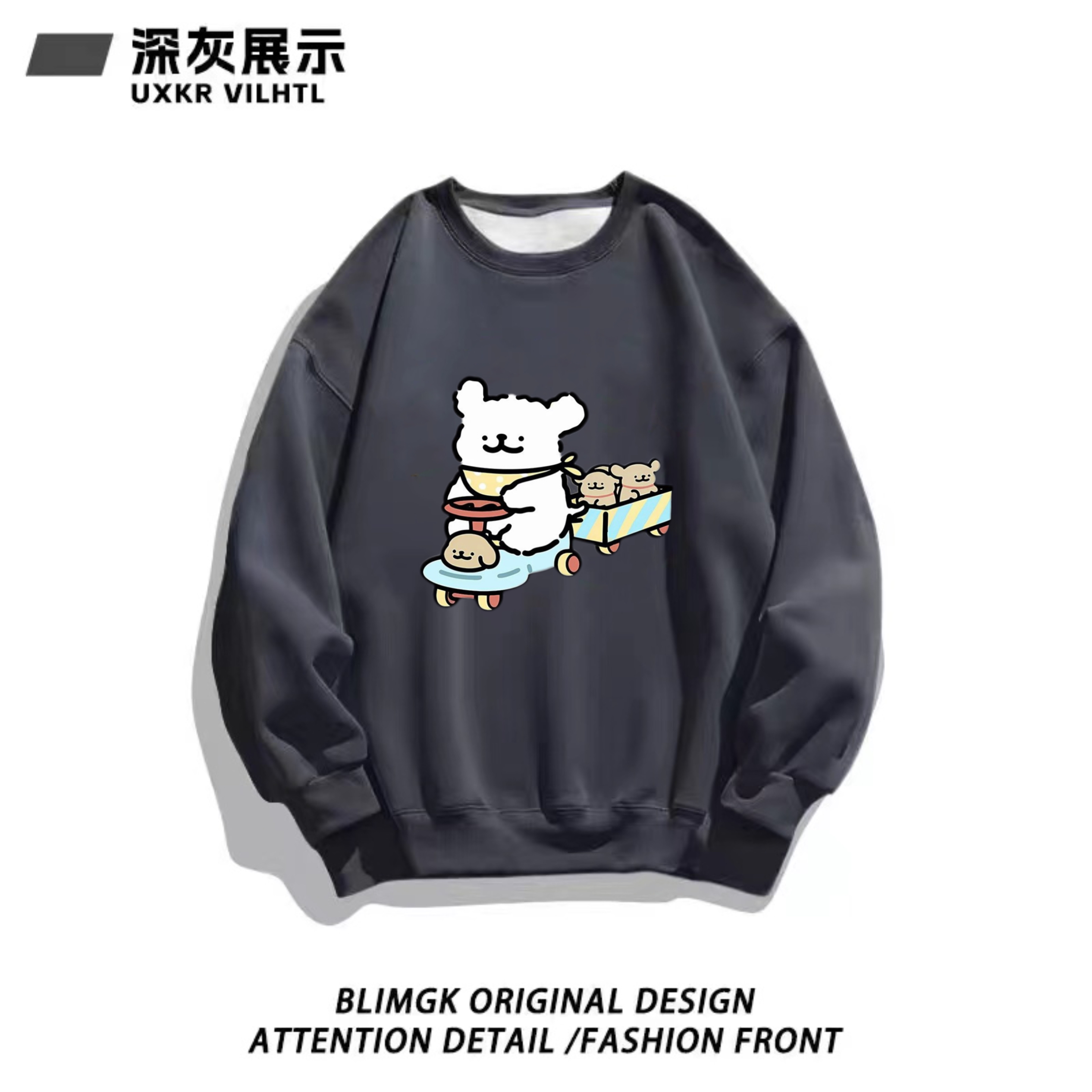 女童卡通线条小狗圆领卫衣秋冬季2024新款中大童宽松洋气加绒上衣