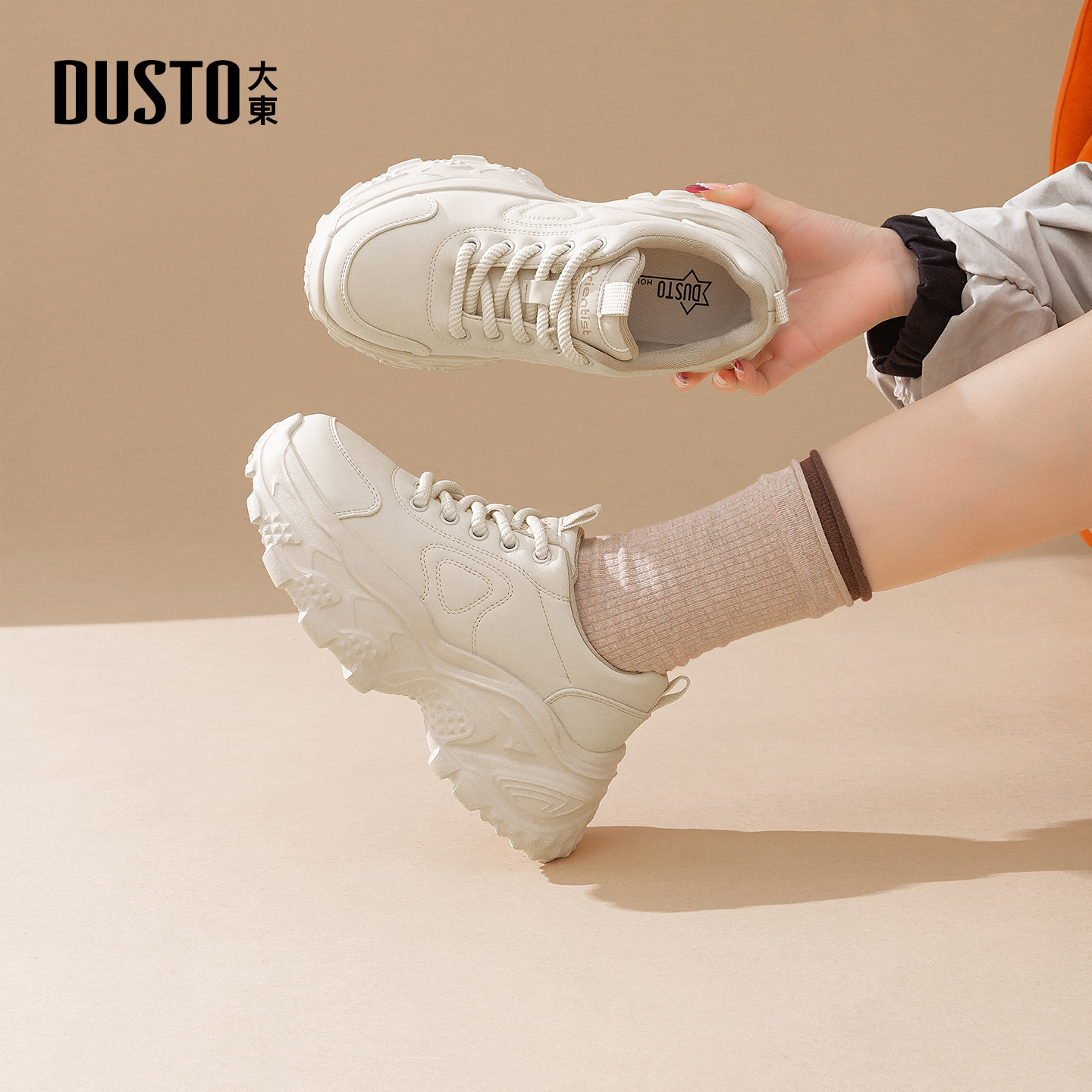 大东老爹鞋女鞋2025年冬季新款休闲平底高跟系带圆头字母标D1359