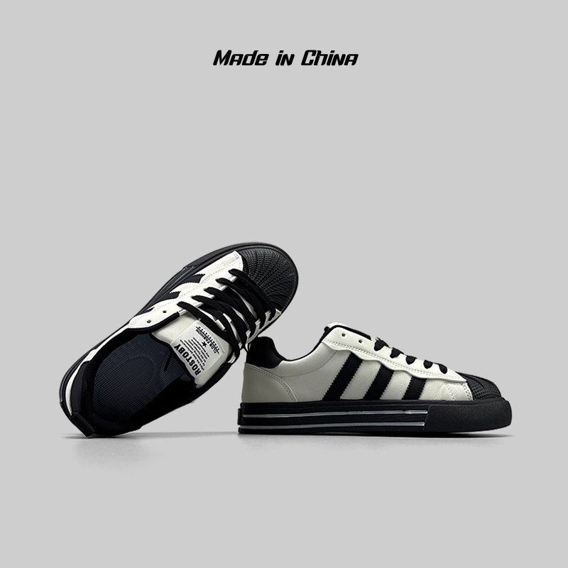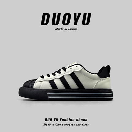 外贸男鞋小众拼色设计贝壳头板鞋皮面韩版时尚潮流百搭休闲运动鞋