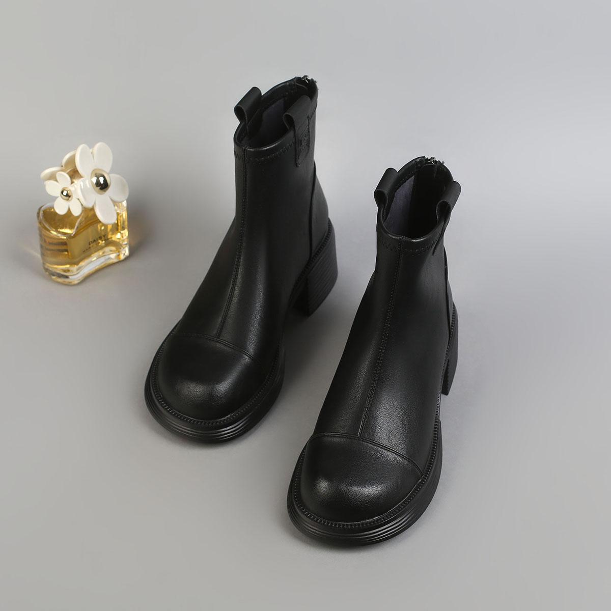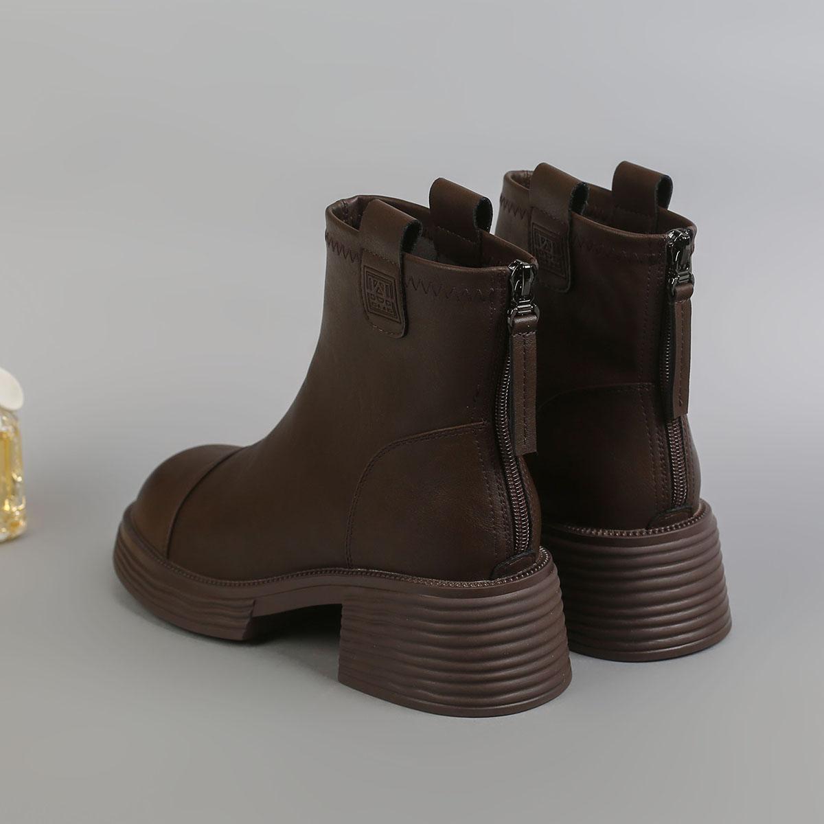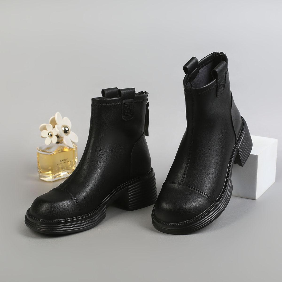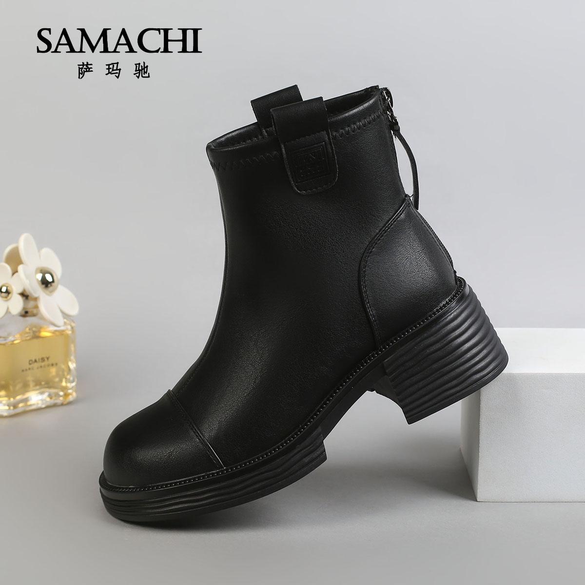 萨玛驰马丁靴女冬2025新款后拉链粗跟高跟鞋保暖美拉德配裙子短靴