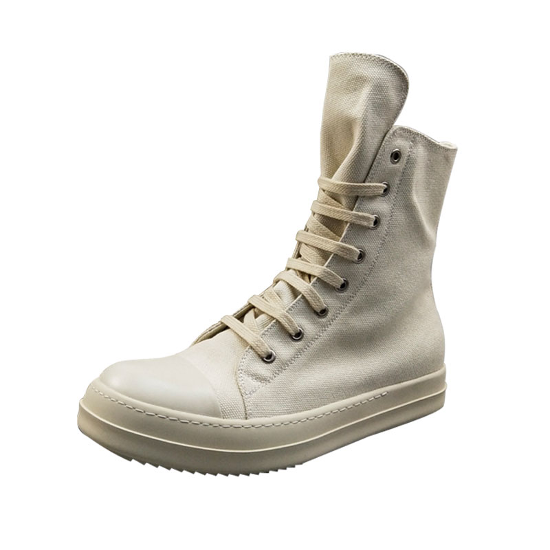ro白色高帮鞋男厚底帆布百搭板鞋女休闲情侣系带小白鞋拉链短靴