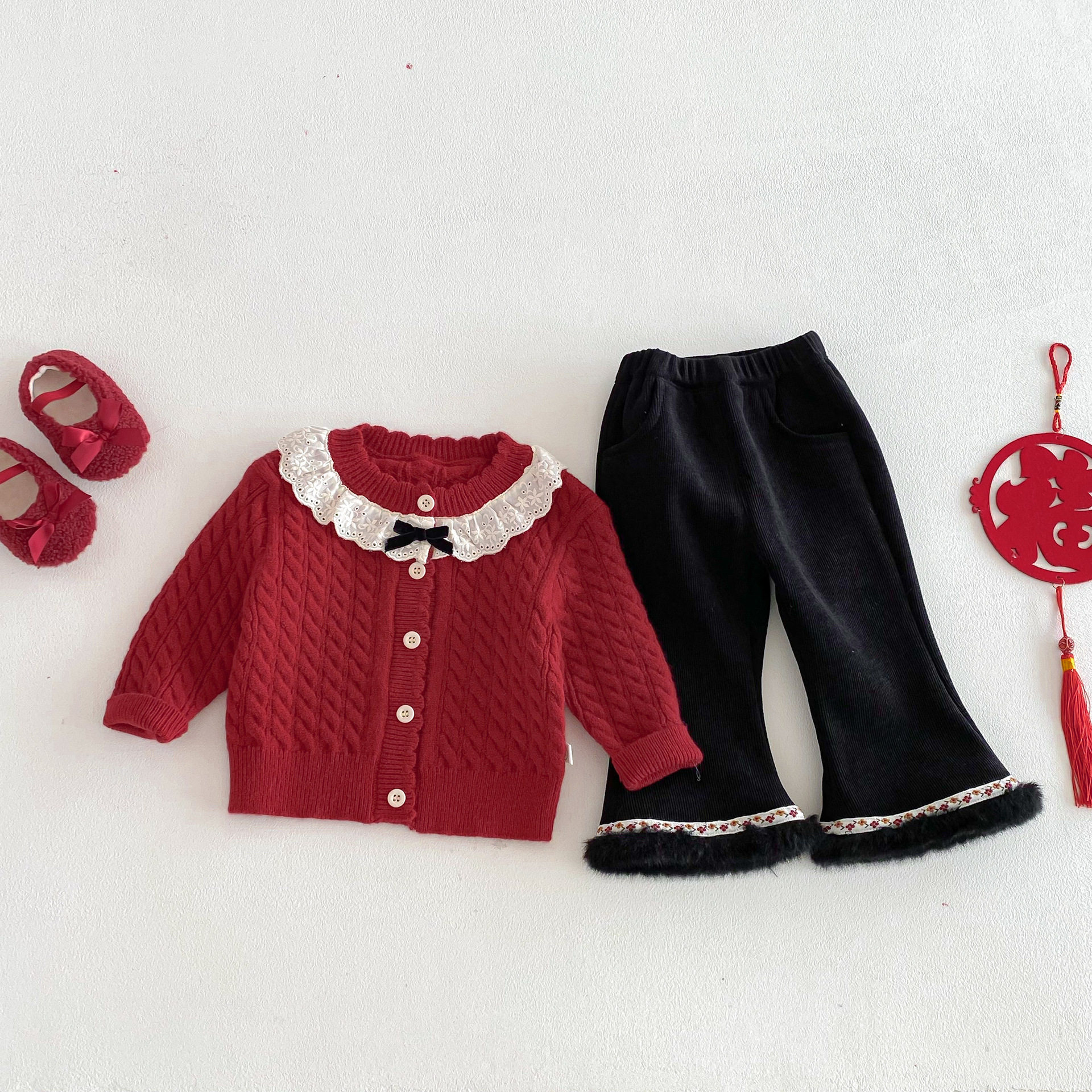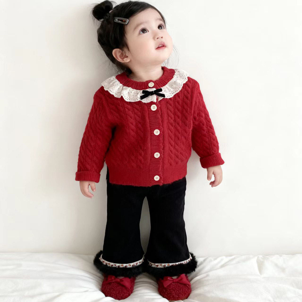 女童毛衣洋气拜年服女宝宝周岁礼服婴儿针织开衫洋气外套新年外搭