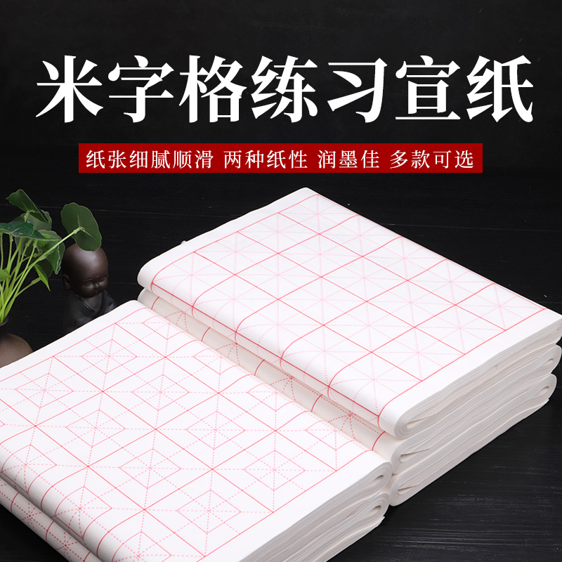 米字格宣纸书法专用练习纸半生半熟带格子初学毛笔字大楷小学生练字四尺六开三开四开回宫格100张安徽泾县