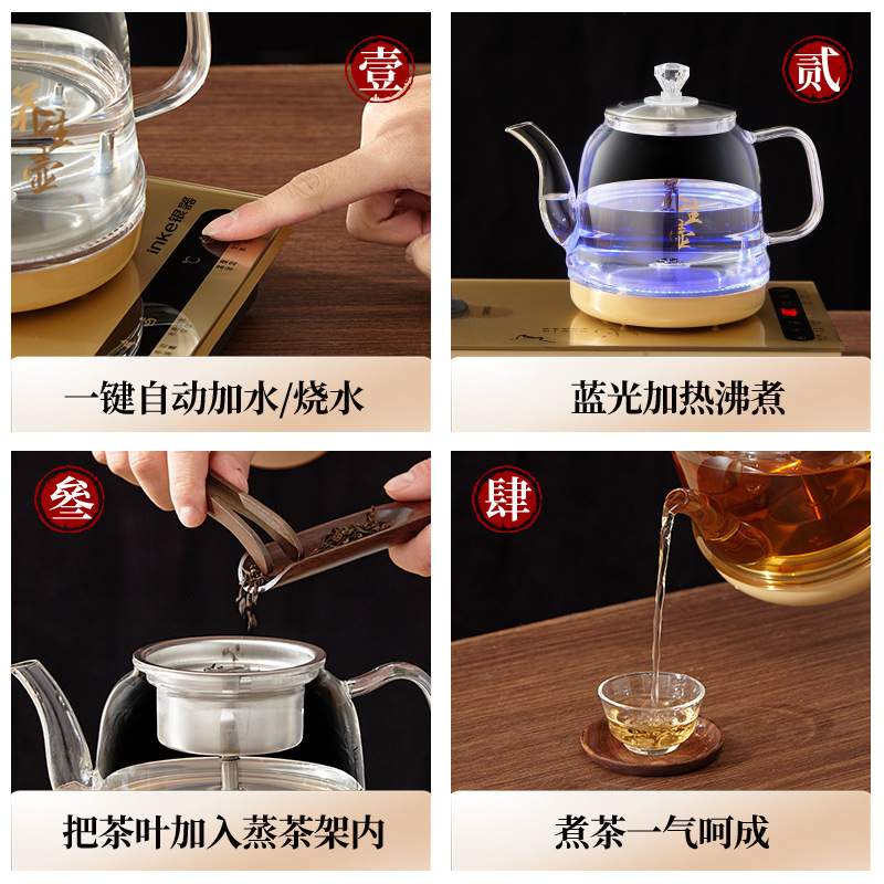 底部双上水电热烧水壶茶台一体全自动抽水泡煮茶器蓝光玻璃电茶炉