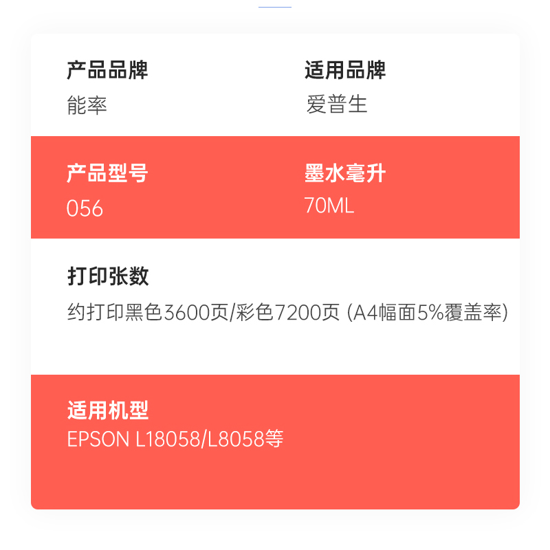 能率适用爱普生L8058墨水056 L18058 L8050 EPSON彩色黑色喷墨打印机墨仓式填充墨汁家用六色