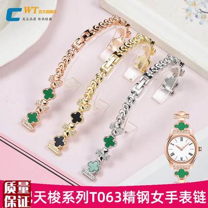 适配天梭a1853表带钢带女俊雅T063.209/T049/T006镶钻精钢表链12m