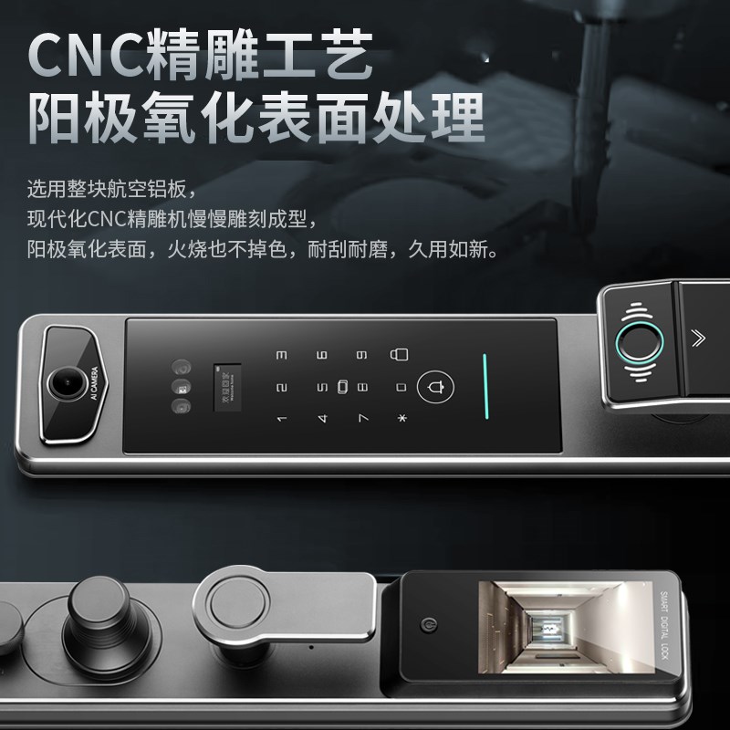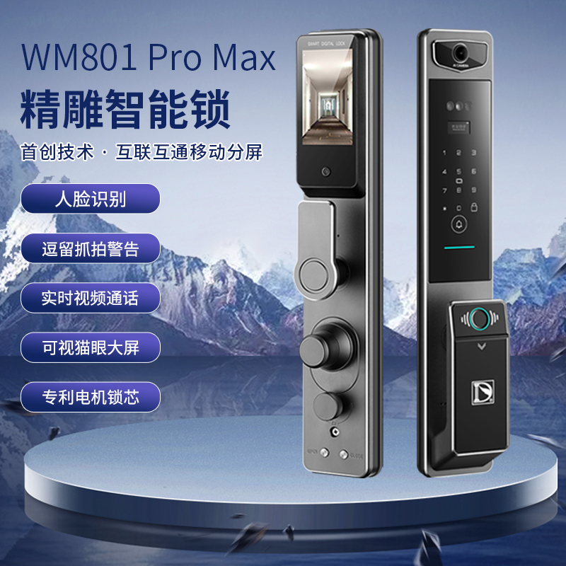 万嘉精雕全自动指纹锁智能锁电机款通用防盗门密码锁801人脸可视