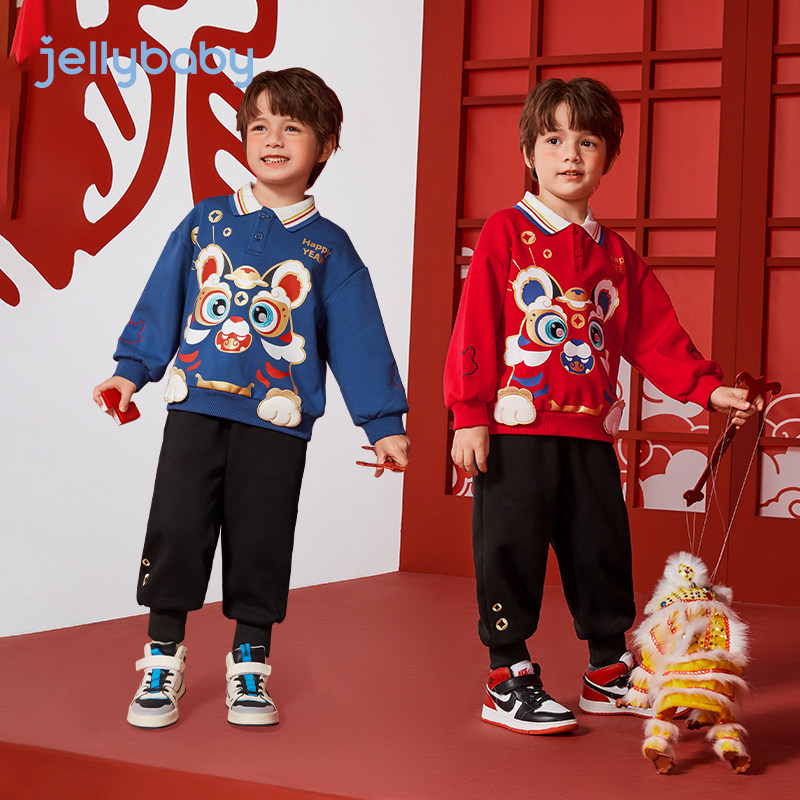 清仓【79.9元任选】jellybaby童装6女童冬装套装男童红色宝宝衣服