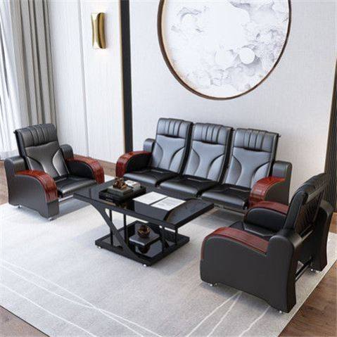 办公沙发茶几组合现代简约办公室商务接待铁艺简易会客时尚三人位